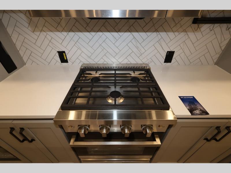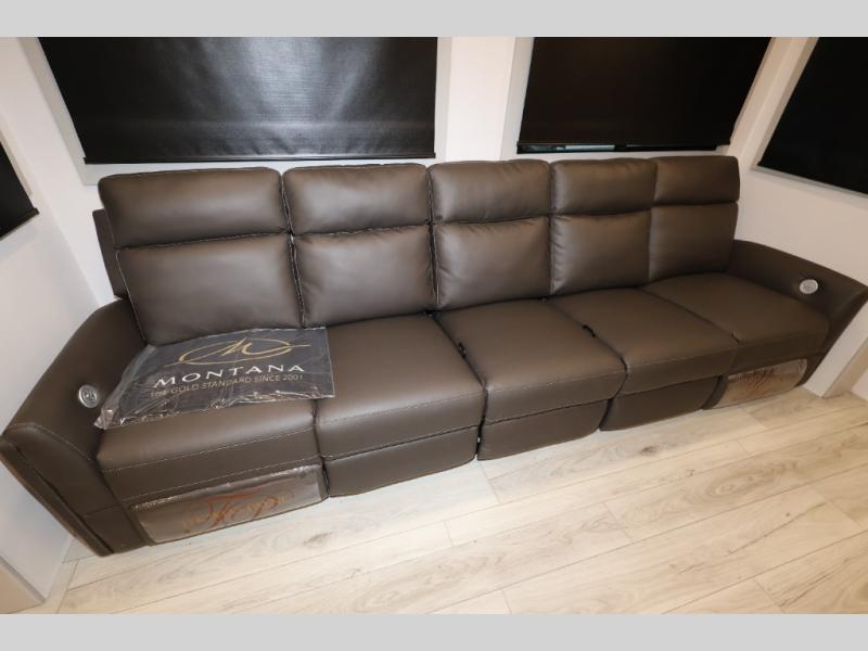 Live the high life with a Keystone Montana High Country fifth wheel! You'll have all the luxury you need with these units. They come with a Road Armor™ shock absorbing hitch pin, a MaxTurn™ front cap with KeyShield™ automotive-grade paint, a fully walkable roof with Alpha seamless TPO membrane system, and an insulated underbelly with forced hot air and electric tank heaters. The Road Armor™ suspension has 360° vibration control for a smooth ride, and the Ground Control® four-point electric auto-leveling with hitch memory will make set-up quite easy. The interior is elegantly appointed with the Thomas Payne Collection furniture, hardwood decorative slide-out fascia, Beauflor® vinyl throughout with Syntec® woven flooring in main slide outs, accent crown molding, and Sandstone Maple cabinetry.