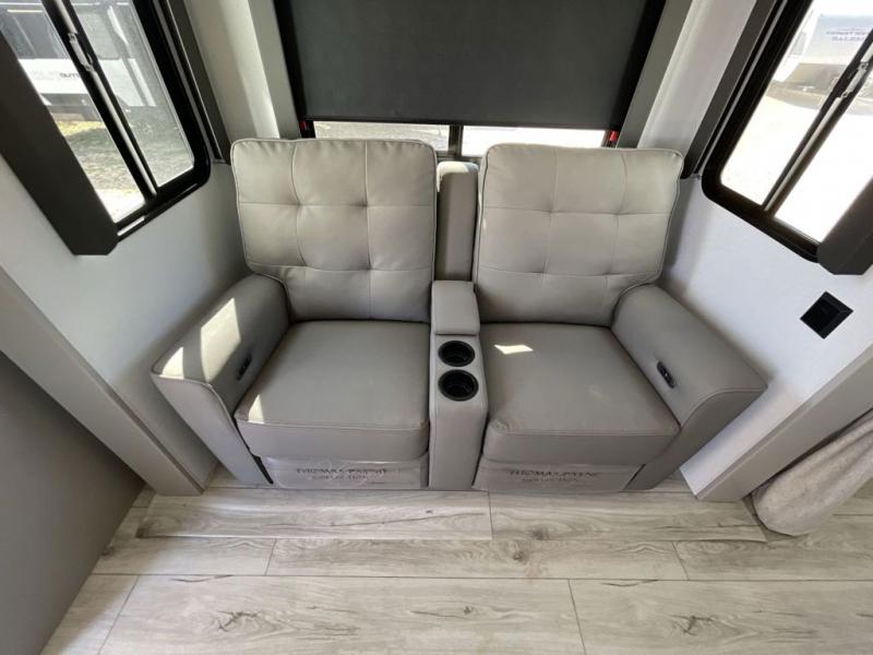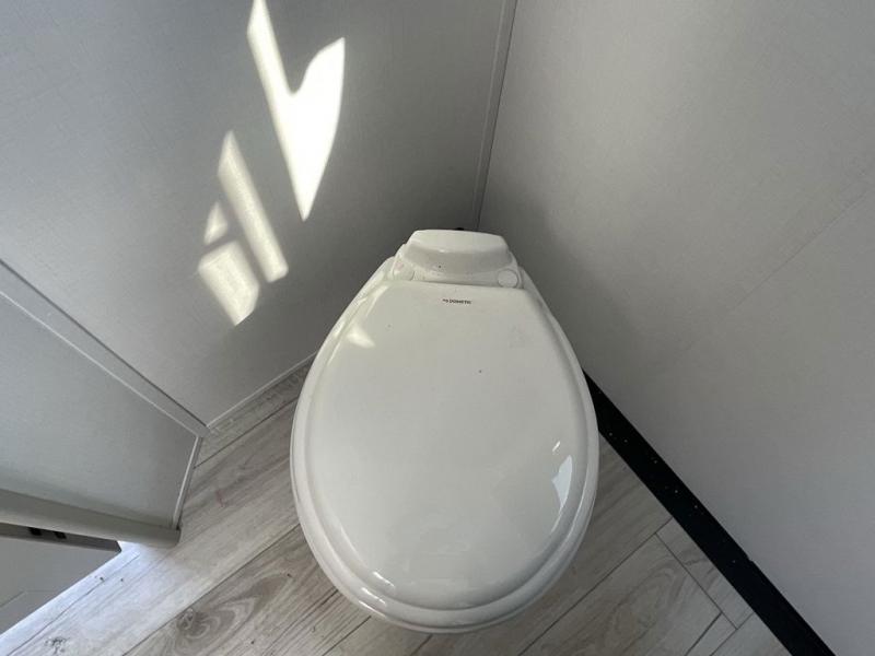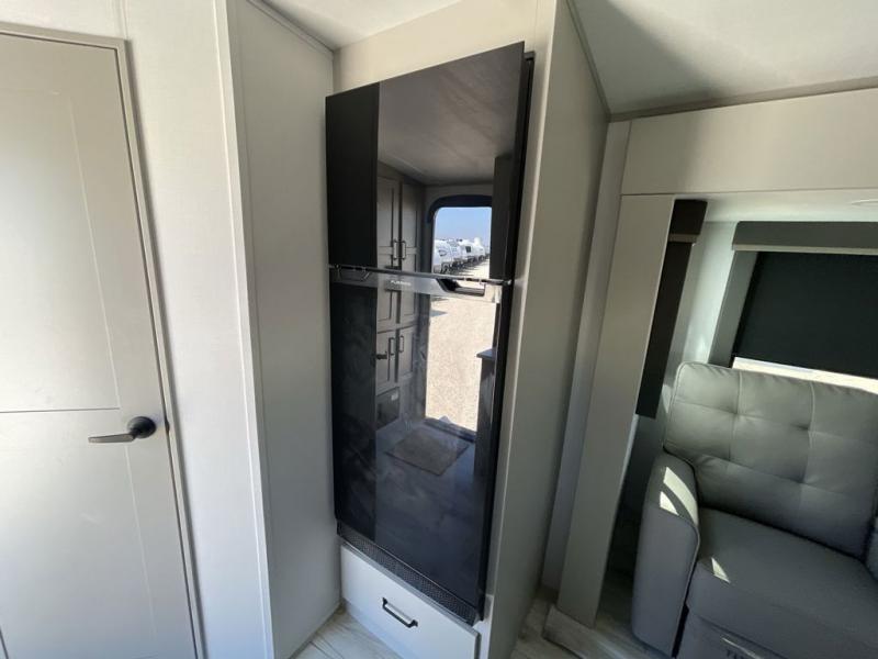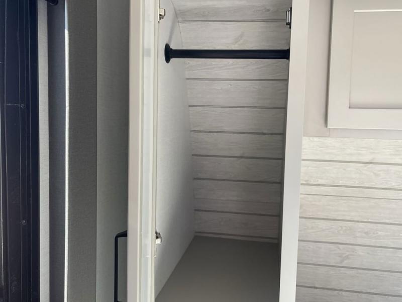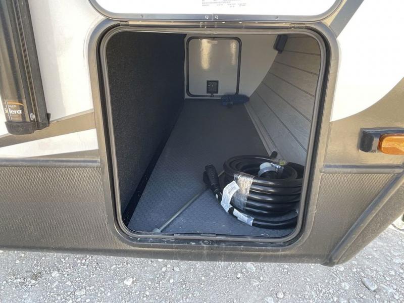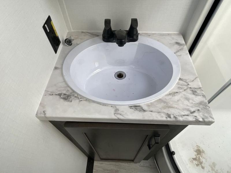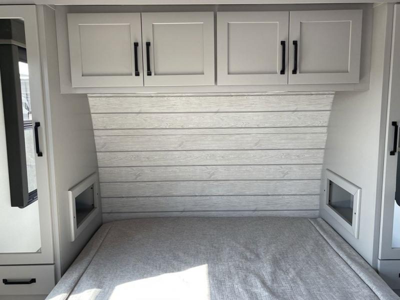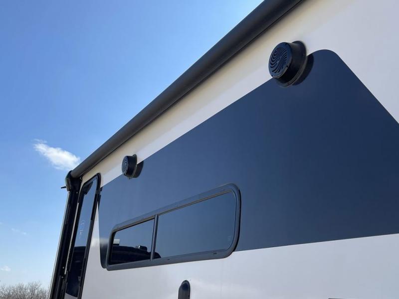 This single slide out travel trailer is perfect for the group of four looking for adventure. There is a queen bed up front with dual wardrobe nightstands, a TV, and a laundry chute that lets you throw dirty clothes straight into the pass-thru storage. The Do-More U-shaped dinette will be perfect for game night, dining, and extra sleeping space for guests. A full kitchen includes a three burner gas range and microwave oven to cook meals, along with a 10 cu. ft. 12V refrigerator for food storage. There is also an entryway pantry/closet for even more storage. And everyone can freshen up in the rear corner bath each day instead of using the camp's facilities!