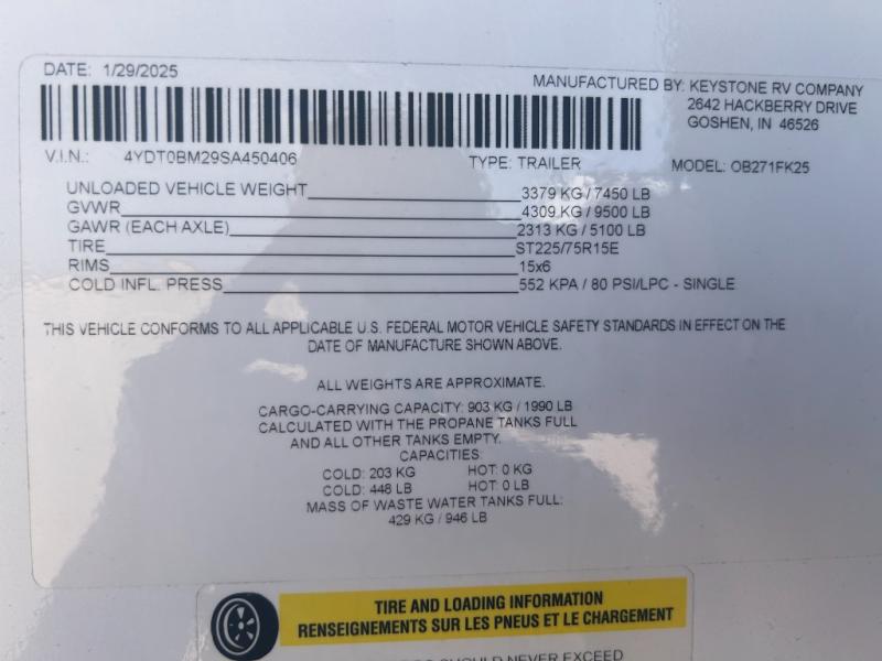 New 2025 Keystone RV Outback 271FK Travel Trailer