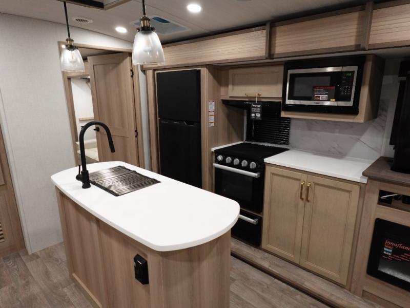 With any Outback travel trailer and toy hauler by Keystone, the Norco BAL frame is lightweight and corrosion-resistant and the huck-bolt assembly provides an extra measure of rugged durability. Also included is the BAL Norco 5.1 stabilizing system, MORryde suspension system, color-coded unified wiring, Tru-fit slide construction, and the Elements climate control allowing you to extend your camping season and combat humidity. The on demand hot water heater, fiberglass backed linoleum floor with no carpet, and the built-in pet kennel storage provide conveniences and comfort you will appreciate. Choose your favorite today!