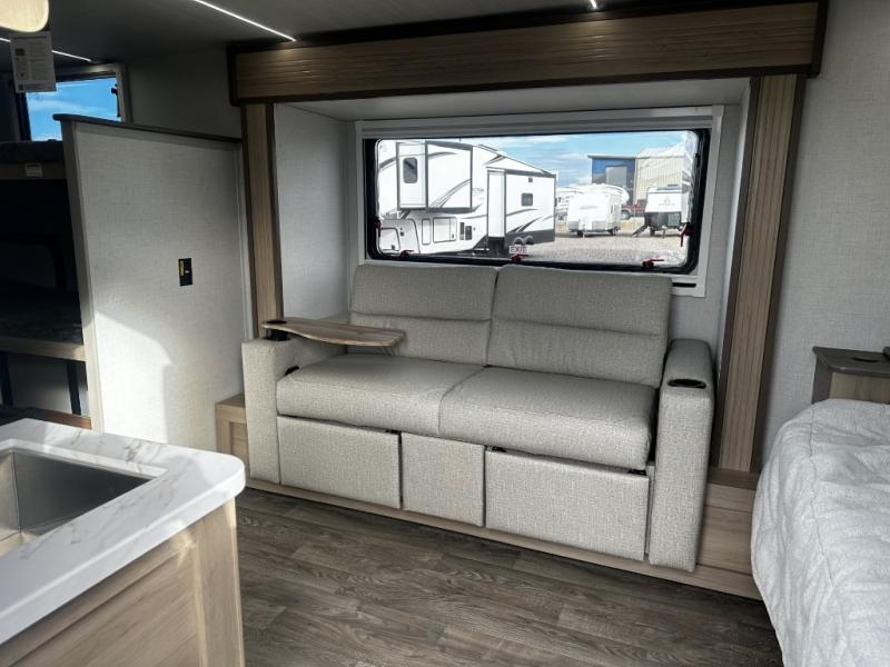 Built for maximum exploration and all types of camping, you are going to love the Outback OBX travel trailers. Each feature a NORCO NXG frame, Dexter TORFLEX® torsion axles for a smooth ride, and Hyperdeck® high-performance water-resistant flooring for years of use. A heated and enclosed underbelly with full Astrofoil insulation on the roof, front cap and underbelly all make it easy to camp in any season. These units features a solar-compatible 12V refrigerator, a Girard® on-demand tankless water heater, a Bluetooth outdoor speaker, and exterior shower. For more off-road capabilities you can add the following options: rugged, BAL by Norco independent suspension, knobby mud tires, a Y-design front hitch bike rack, plus two 100 Ah Dragonfly energy lithium-ion batteries to power your off-road excursions. There is also an optional back-up camera and optional solar panels. Come choose your model today.