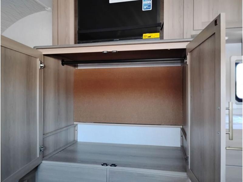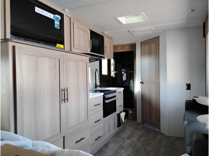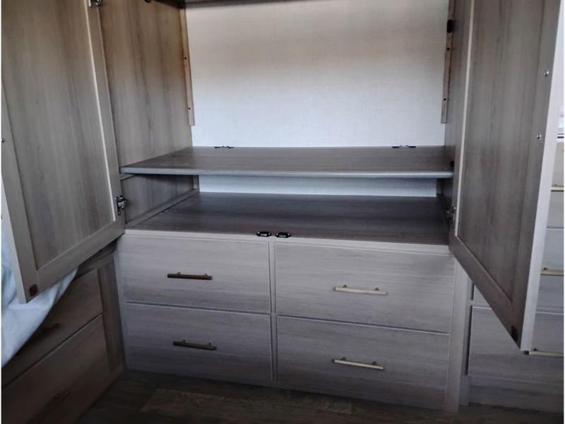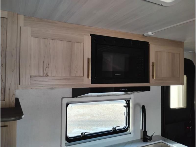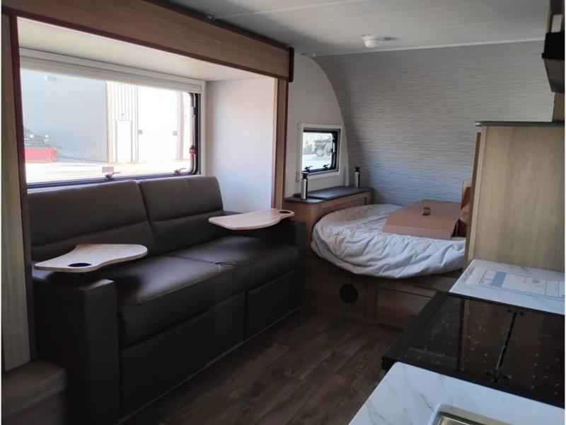 You and your partner will love this travel travel trailer! In the bedroom, the 54" X 75" full bed makes the perfect space for two, along with the flip up storage and dual USB connectors beside the bed. Have a relaxing time watching the 32" Smart TV seated on the theater dinette fitted with pivoting tables. Take a refreshing bath after a long day in the amazing radius shaped bathroom. Spend comfortable moments on the outside with the 12' awning, and there is a exterior storage space to store other belongings.