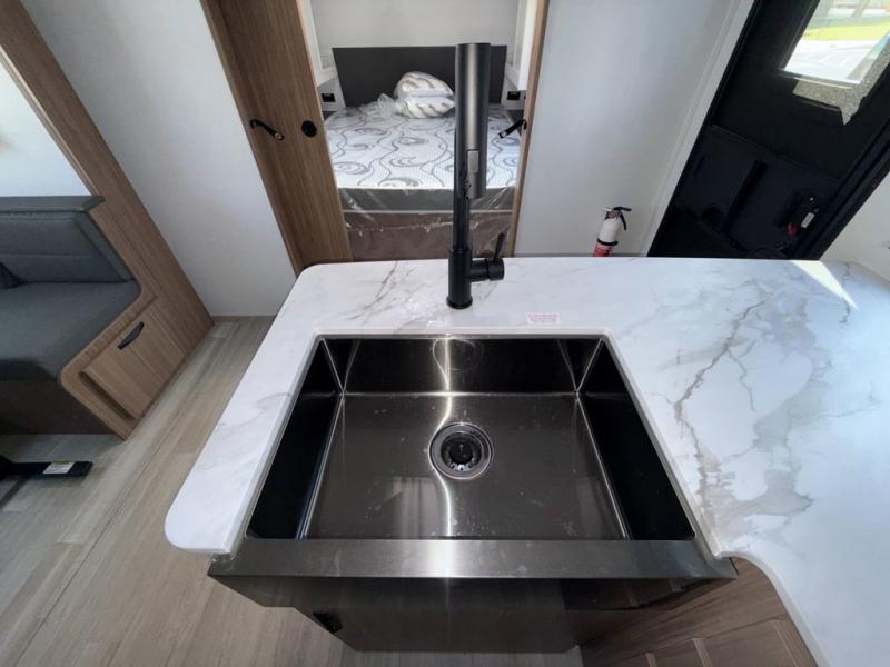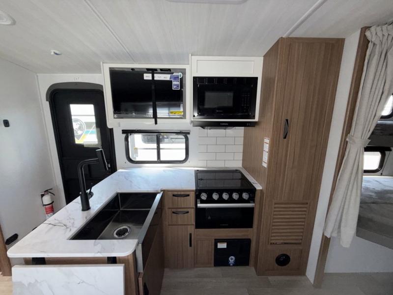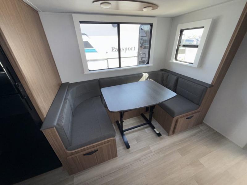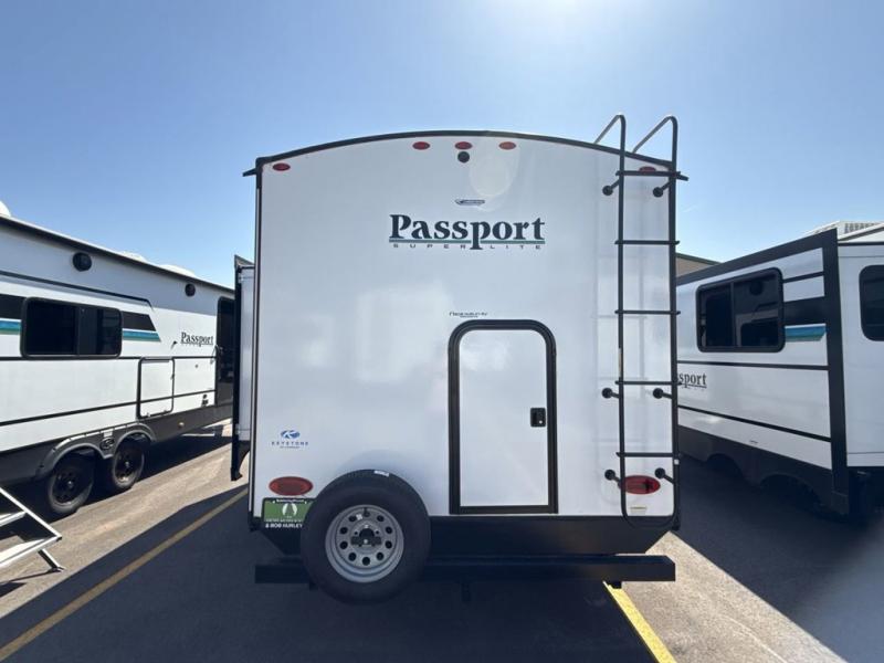 With any Keystone Passport Super Lite travel trailer you will enjoy lightweight towing and lots of interior comforts! The power tongue jack lets you hitch up at the drop of a hat, and the Dexter torsion axle rubber ride suspension will make towing easier than ever. You will appreciate having power stabilizer jacks for quick setup and an exterior convenience center to monitor tank levels. These trailers are constructed with a seamless, laminated and gel-coated filon exterior, 80% tinted safety glass windows, and a one-piece polypropylene underbelly. The interior will have you feeling right at home with residential durable Beauflor vinyl flooring, deluxe night shades, LED lighting throughout, and seamless kitchen countertops to name a few comforts.