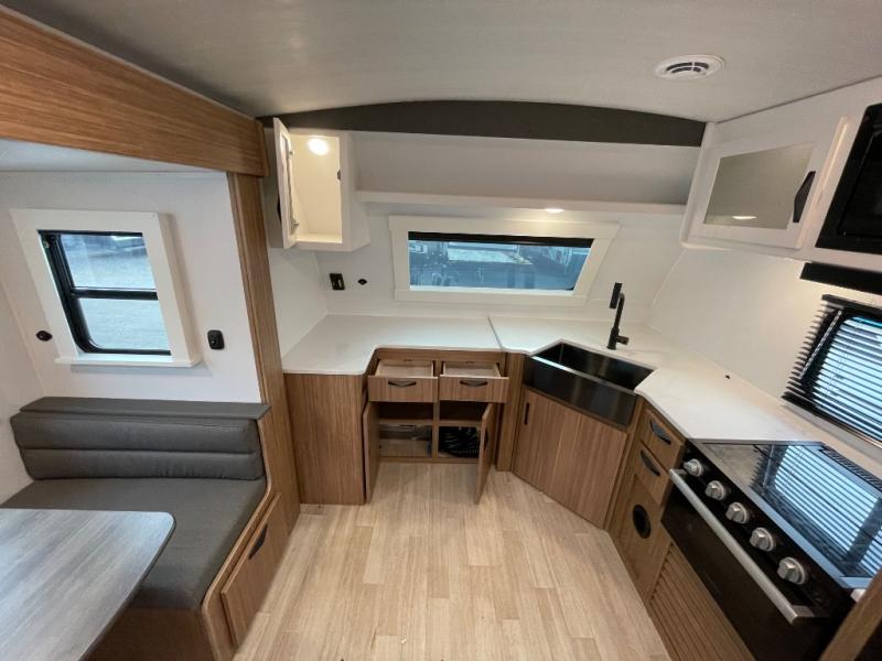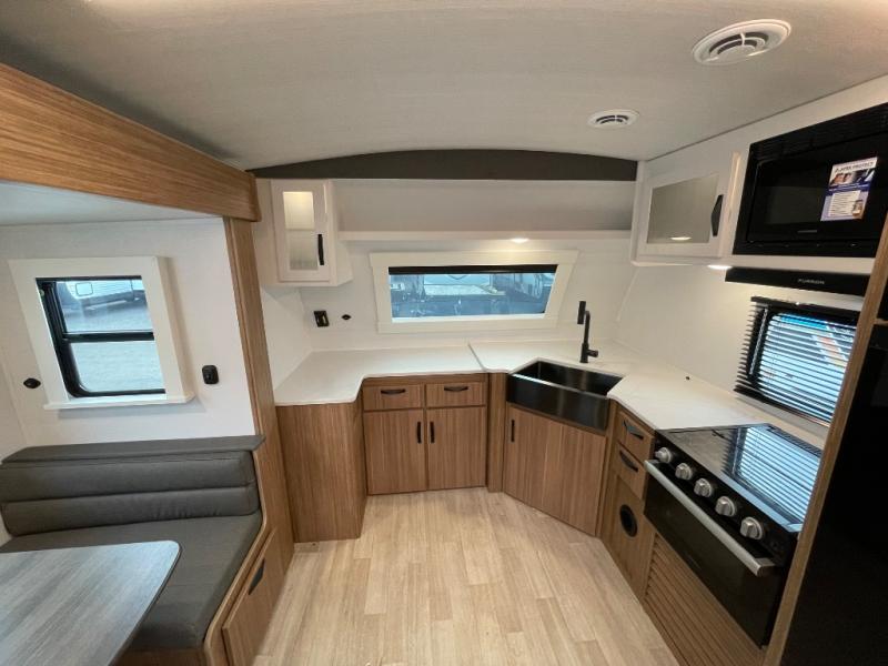 Each one of these Keystone RV Passport travel trailers offer grand style and multi-functional features! They have best-in-class storage for big things like paddle boards and small things like sleeping bags. There's no need for cordless drills and bending over to put the jacks down, simply push a button and the power stabilizer jacks do the rest. The one piece polypropylene underbelly and extended season camping package protects your units vitals in all weather conditions. Exclusive to Keystone is the Tru-fit slide construction and the Hyper Deck flooring which is more resilient, stronger and lighter than the traditional laminated wood construction, plus it resists water and water damage. Inside, you'll find residential durable Beauflor vinyl flooring, deluxe night shades, bedside outlets/USB ports, and a bath skylight for more natural light and additional head room.