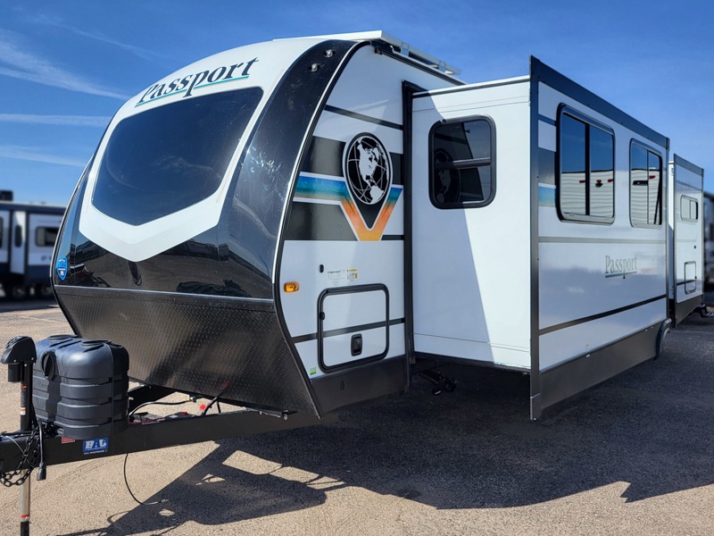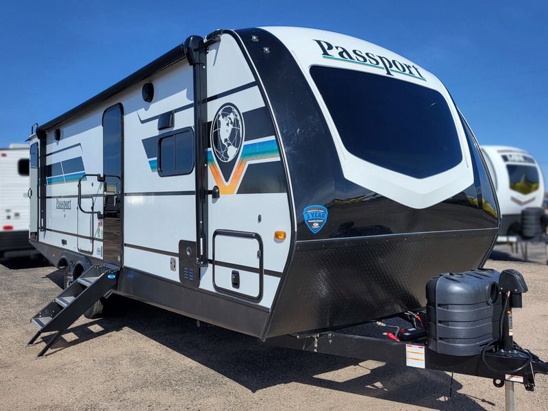Each one of these Keystone RV Passport travel trailers offer grand style and multi-functional features! They have best-in-class storage for big things like paddle boards and small things like sleeping bags. There's no need for cordless drills and bending over to put the jacks down, simply push a button and the power stabilizer jacks do the rest. The one piece polypropylene underbelly and extended season camping package protects your units vitals in all weather conditions. Exclusive to Keystone is the Tru-fit slide construction and the Hyper Deck flooring which is more resilient, stronger and lighter than the traditional laminated wood construction, plus it resists water and water damage. Inside, you'll find residential durable Beauflor vinyl flooring, deluxe night shades, bedside outlets/USB ports, and a bath skylight for more natural light and additional head room.