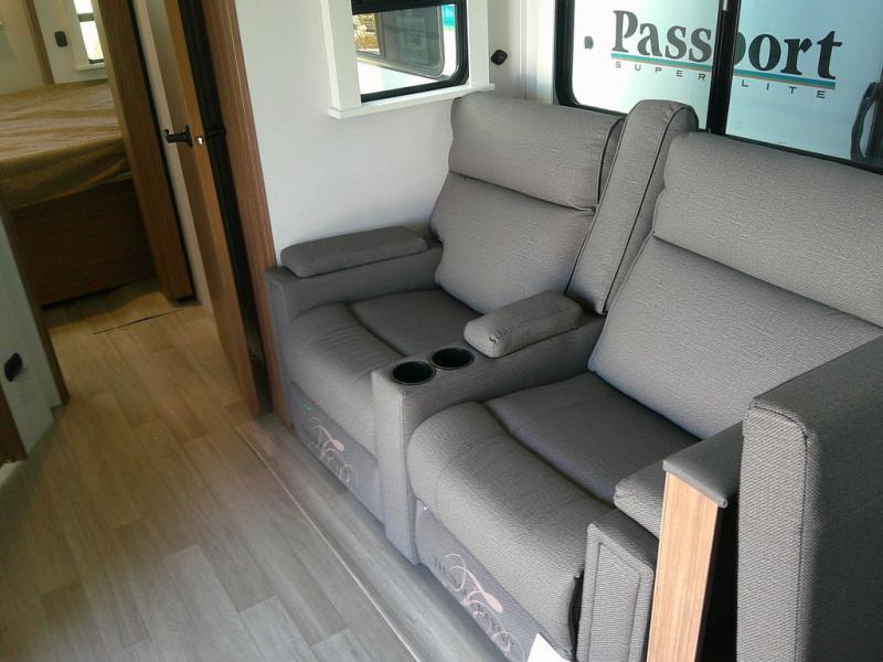 Each one of these Keystone RV Passport travel trailers offer grand style and multi-functional features! They have best-in-class storage for big things like paddle boards and small things like sleeping bags. There's no need for cordless drills and bending over to put the jacks down, simply push a button and the power stabilizer jacks do the rest. The one piece polypropylene underbelly and extended season camping package protects your units vitals in all weather conditions. Exclusive to Keystone is the Tru-fit slide construction and the Hyper Deck flooring which is more resilient, stronger and lighter than the traditional laminated wood construction, plus it resists water and water damage. Inside, you'll find residential durable Beauflor vinyl flooring, deluxe night shades, bedside outlets/USB ports, and a bath skylight for more natural light and additional head room.