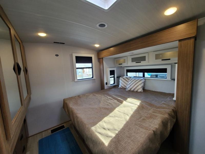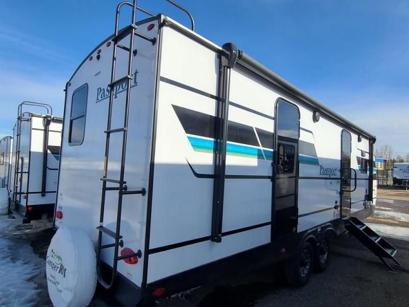 Each one of these Keystone RV Passport travel trailers offer grand style and multi-functional features! They have best-in-class storage for big things like paddle boards and small things like sleeping bags. There's no need for cordless drills and bending over to put the jacks down, simply push a button and the power stabilizer jacks do the rest. The one piece polypropylene underbelly and extended season camping package protects your units vitals in all weather conditions. Exclusive to Keystone is the Tru-fit slide construction and the Hyper Deck flooring which is more resilient, stronger and lighter than the traditional laminated wood construction, plus it resists water and water damage. Inside, you'll find residential durable Beauflor vinyl flooring, deluxe night shades, bedside outlets/USB ports, and a bath skylight for more natural light and additional head room.