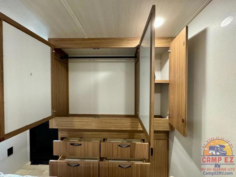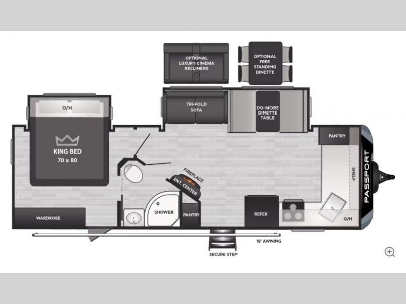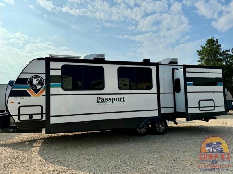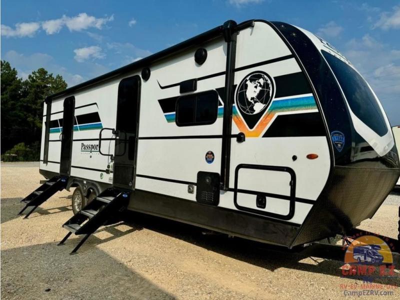 Each one of these Keystone RV Passport travel trailers offer grand style and multi-functional features! They have best-in-class storage for big things like paddle boards and small things like sleeping bags. There's no need for cordless drills and bending over to put the jacks down, simply push a button and the power stabilizer jacks do the rest. The one piece polypropylene underbelly and extended season camping package protects your units vitals in all weather conditions. Exclusive to Keystone is the Tru-fit slide construction and the Hyper Deck flooring which is more resilient, stronger and lighter than the traditional laminated wood construction, plus it resists water and water damage. Inside, you'll find residential durable Beauflor vinyl flooring, deluxe night shades, bedside outlets/USB ports, and a bath skylight for more natural light and additional head room.
