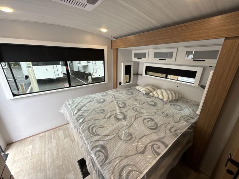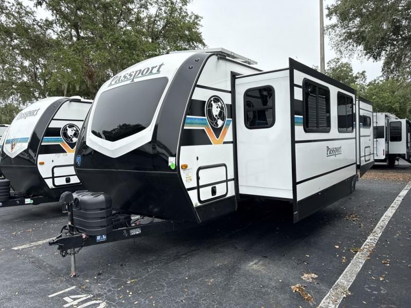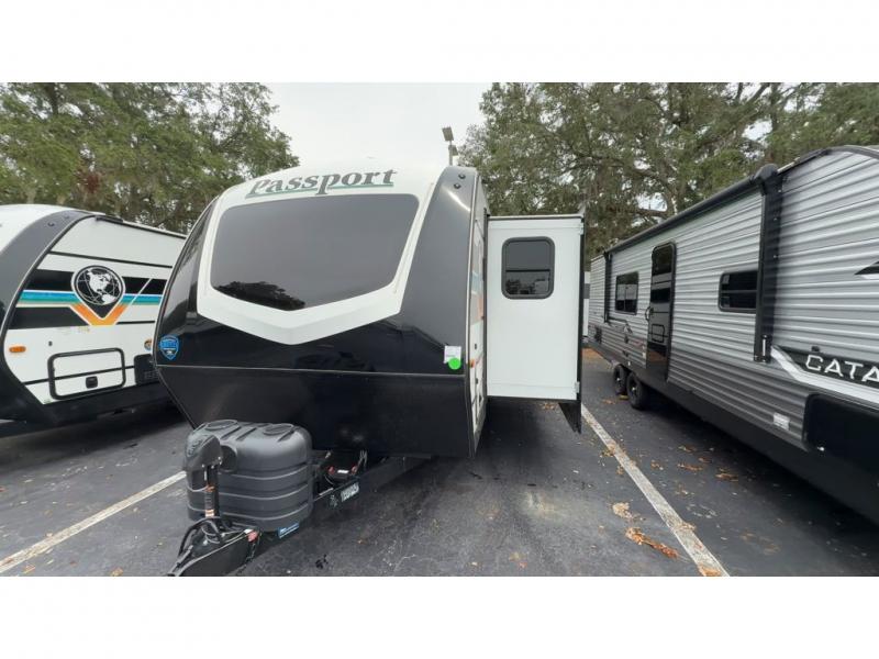 Each one of these Keystone RV Passport travel trailers offer grand style and multi-functional features! They have best-in-class storage for big things like paddle boards and small things like sleeping bags. There's no need for cordless drills and bending over to put the jacks down, simply push a button and the power stabilizer jacks do the rest. The one piece polypropylene underbelly and extended season camping package protects your units vitals in all weather conditions. Exclusive to Keystone is the Tru-fit slide construction and the Hyper Deck flooring which is more resilient, stronger and lighter than the traditional laminated wood construction, plus it resists water and water damage. Inside, you'll find residential durable Beauflor vinyl flooring, deluxe night shades, bedside outlets/USB ports, and a bath skylight for more natural light and additional head room.