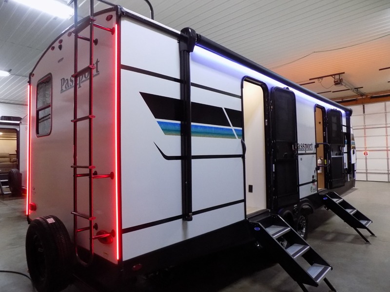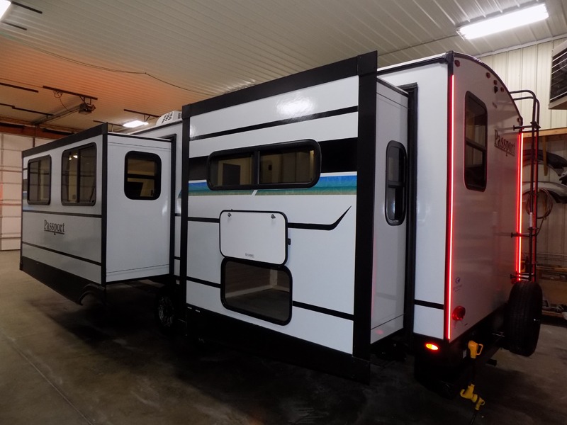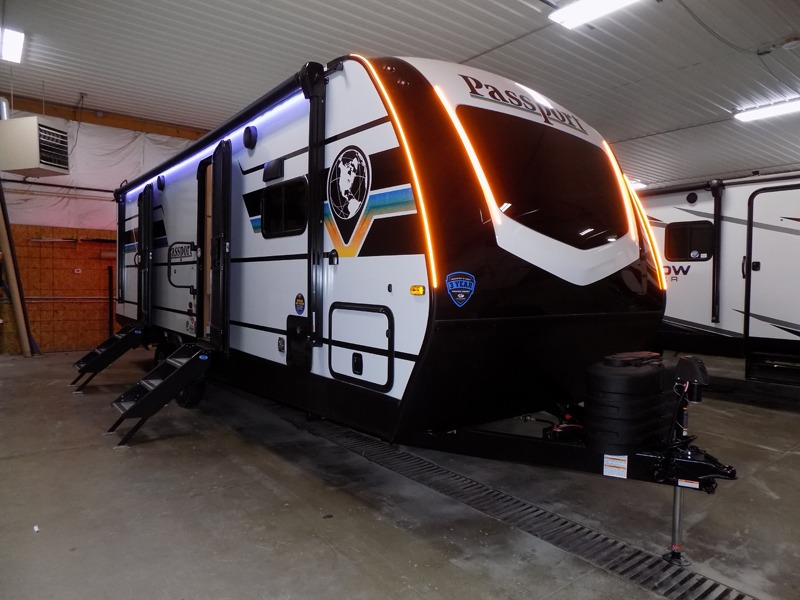 Each one of these Keystone RV Passport travel trailers offer grand style and multi-functional features! They have best-in-class storage for big things like paddle boards and small things like sleeping bags. There's no need for cordless drills and bending over to put the jacks down, simply push a button and the power stabilizer jacks do the rest. The one piece polypropylene underbelly and extended season camping package protects your units vitals in all weather conditions. Exclusive to Keystone is the Tru-fit slide construction and the Hyper Deck flooring which is more resilient, stronger and lighter than the traditional laminated wood construction, plus it resists water and water damage. Inside, you'll find residential durable Beauflor vinyl flooring, deluxe night shades, bedside outlets/USB ports, and a bath skylight for more natural light and additional head room.