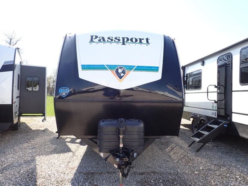 With any Keystone Passport Super Lite travel trailer you will enjoy lightweight towing and lots of interior comforts! The power tongue jack lets you hitch up at the drop of a hat, and the Dexter torsion axle rubber ride suspension will make towing easier than ever. You will appreciate having power stabilizer jacks for quick setup and an exterior convenience center to monitor tank levels. These trailers are constructed with a seamless, laminated and gel-coated filon exterior, 80% tinted safety glass windows, and a one-piece polypropylene underbelly. The interior will have you feeling right at home with residential durable Beauflor vinyl flooring, deluxe night shades, LED lighting throughout, and seamless kitchen countertops to name a few comforts.