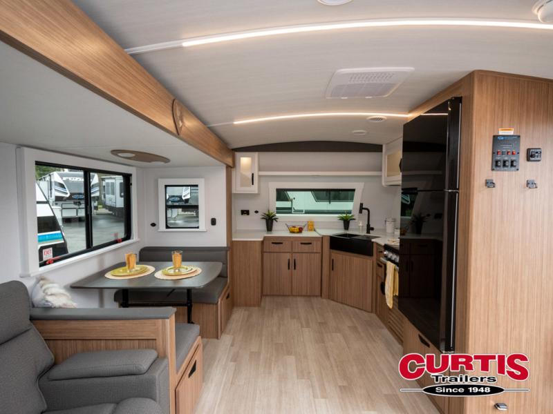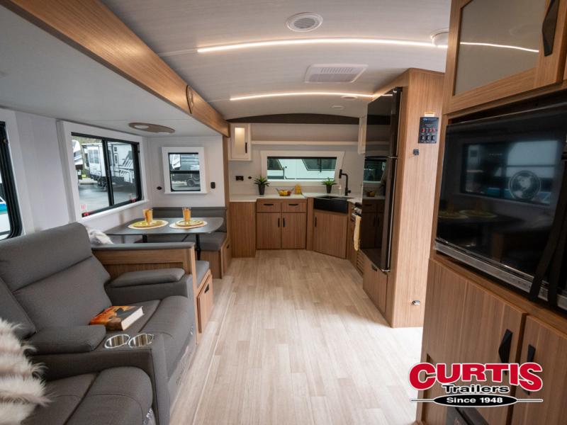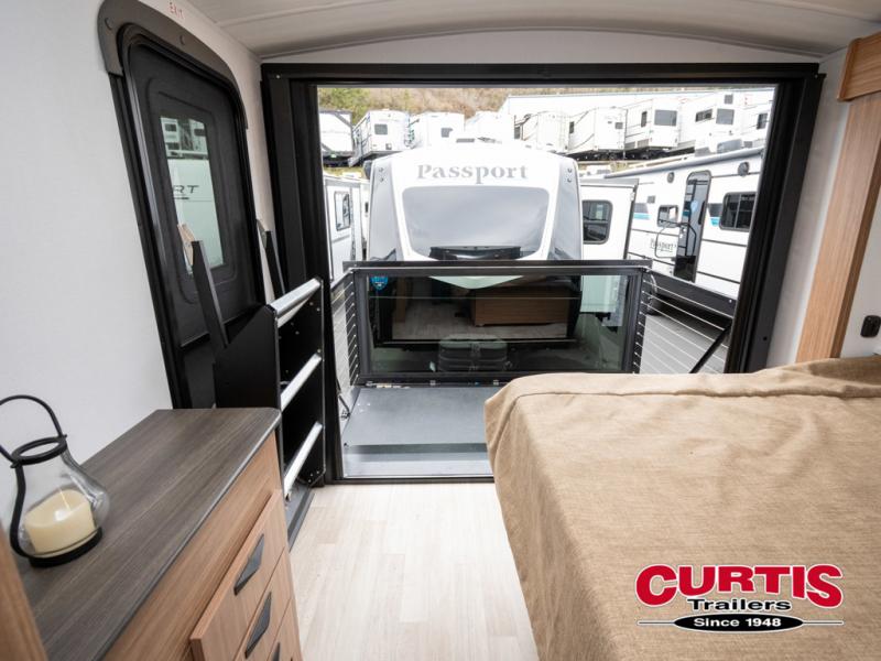 Each one of these Keystone RV Passport travel trailers offer grand style and multi-functional features! They have best-in-class storage for big things like paddle boards and small things like sleeping bags. There's no need for cordless drills and bending over to put the jacks down, simply push a button and the power stabilizer jacks do the rest. The one piece polypropylene underbelly and extended season camping package protects your units vitals in all weather conditions. Exclusive to Keystone is the Tru-fit slide construction and the Hyper Deck flooring which is more resilient, stronger and lighter than the traditional laminated wood construction, plus it resists water and water damage. Inside, you'll find residential durable Beauflor vinyl flooring, deluxe night shades, bedside outlets/USB ports, and a bath skylight for more natural light and additional head room.