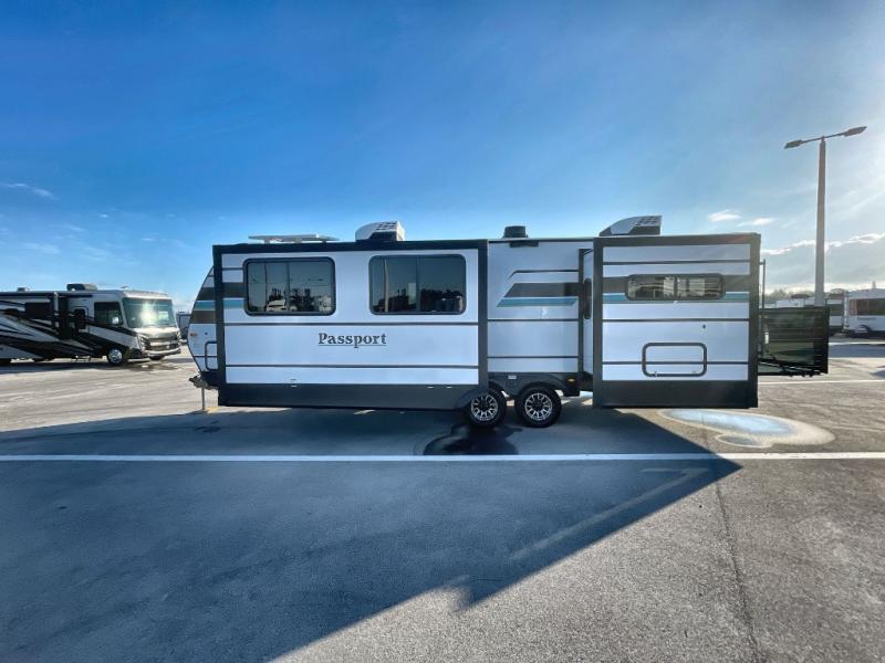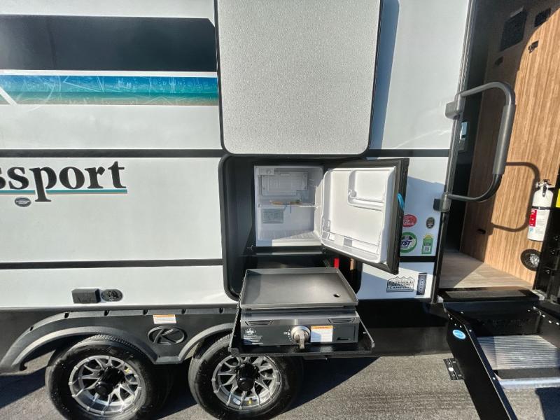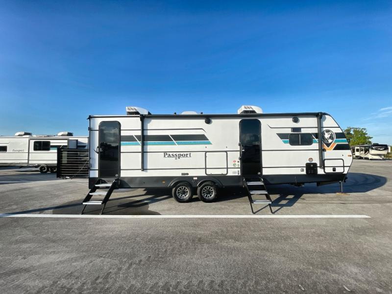 Each one of these Keystone RV Passport travel trailers offer grand style and multi-functional features! They have best-in-class storage for big things like paddle boards and small things like sleeping bags. There's no need for cordless drills and bending over to put the jacks down, simply push a button and the power stabilizer jacks do the rest. The one piece polypropylene underbelly and extended season camping package protects your units vitals in all weather conditions. Exclusive to Keystone is the Tru-fit slide construction and the Hyper Deck flooring which is more resilient, stronger and lighter than the traditional laminated wood construction, plus it resists water and water damage. Inside, you'll find residential durable Beauflor vinyl flooring, deluxe night shades, bedside outlets/USB ports, and a bath skylight for more natural light and additional head room.