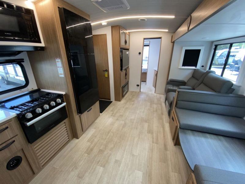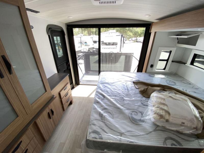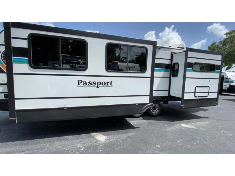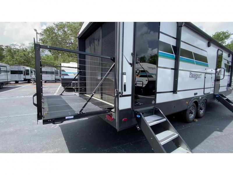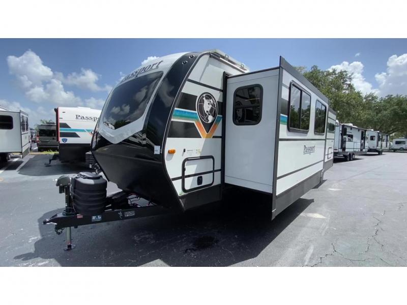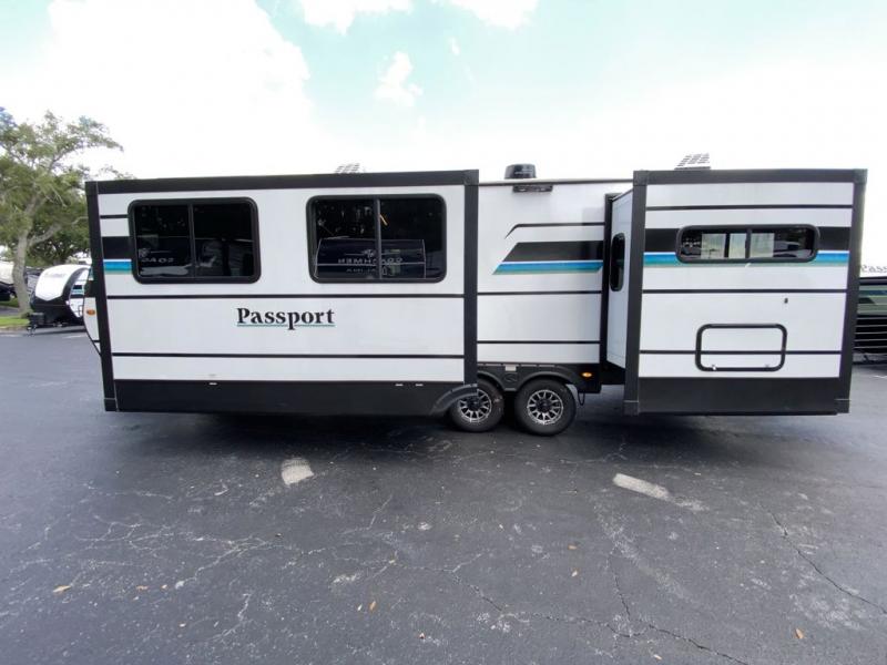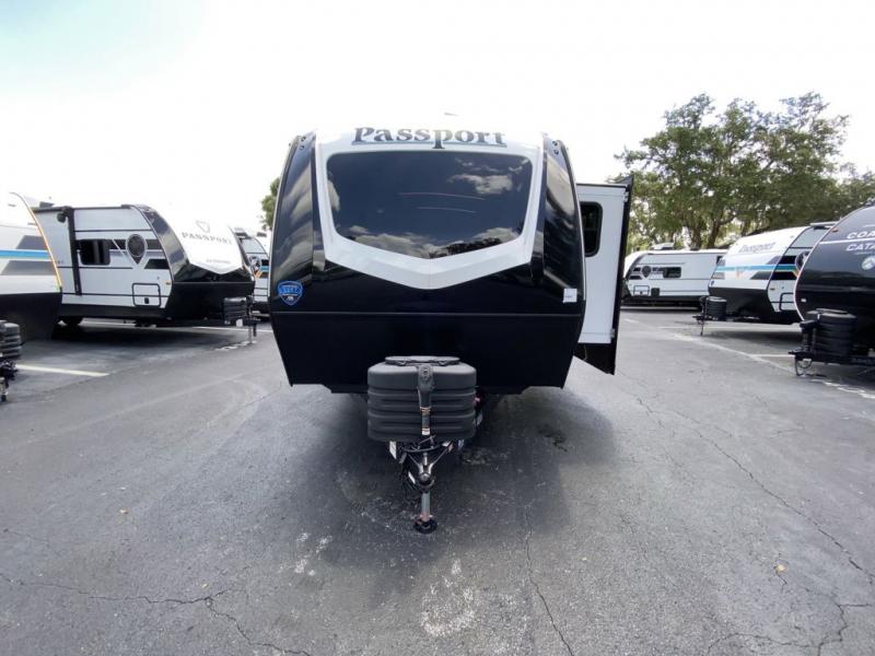 Each one of these Keystone RV Passport travel trailers offer grand style and multi-functional features! They have best-in-class storage for big things like paddle boards and small things like sleeping bags. There's no need for cordless drills and bending over to put the jacks down, simply push a button and the power stabilizer jacks do the rest. The one piece polypropylene underbelly and extended season camping package protects your units vitals in all weather conditions. Exclusive to Keystone is the Tru-fit slide construction and the Hyper Deck flooring which is more resilient, stronger and lighter than the traditional laminated wood construction, plus it resists water and water damage. Inside, you'll find residential durable Beauflor vinyl flooring, deluxe night shades, bedside outlets/USB ports, and a bath skylight for more natural light and additional head room.