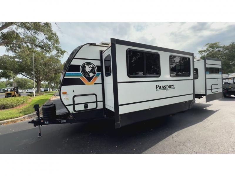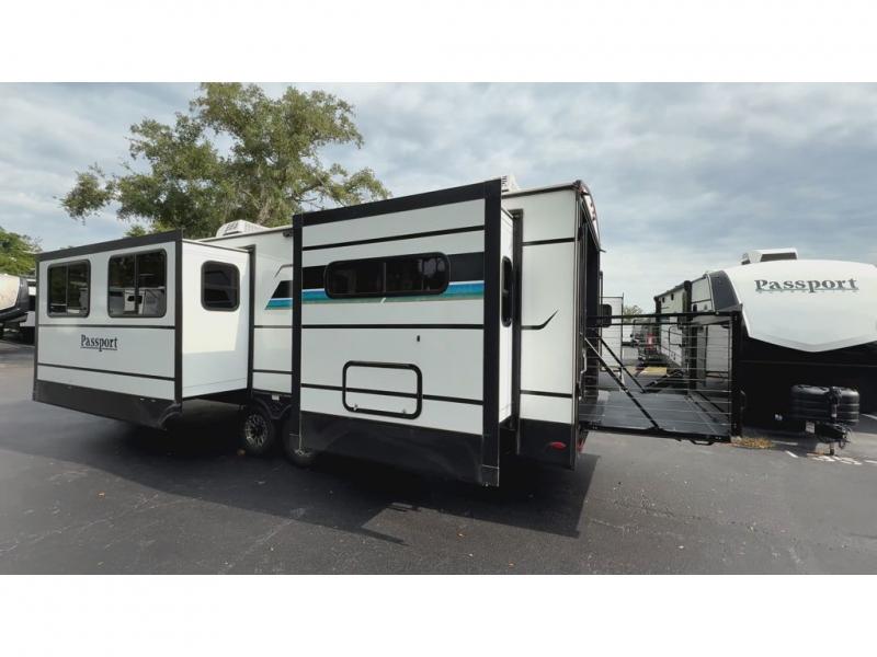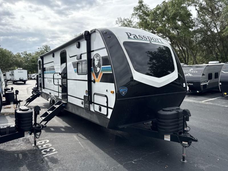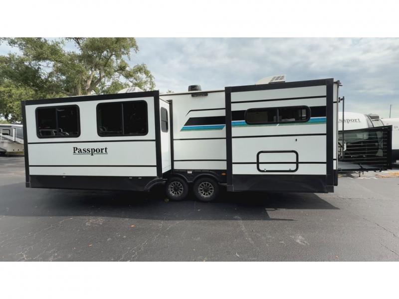 Each one of these Keystone RV Passport travel trailers offer grand style and multi-functional features! They have best-in-class storage for big things like paddle boards and small things like sleeping bags. There's no need for cordless drills and bending over to put the jacks down, simply push a button and the power stabilizer jacks do the rest. The one piece polypropylene underbelly and extended season camping package protects your units vitals in all weather conditions. Exclusive to Keystone is the Tru-fit slide construction and the Hyper Deck flooring which is more resilient, stronger and lighter than the traditional laminated wood construction, plus it resists water and water damage. Inside, you'll find residential durable Beauflor vinyl flooring, deluxe night shades, bedside outlets/USB ports, and a bath skylight for more natural light and additional head room.