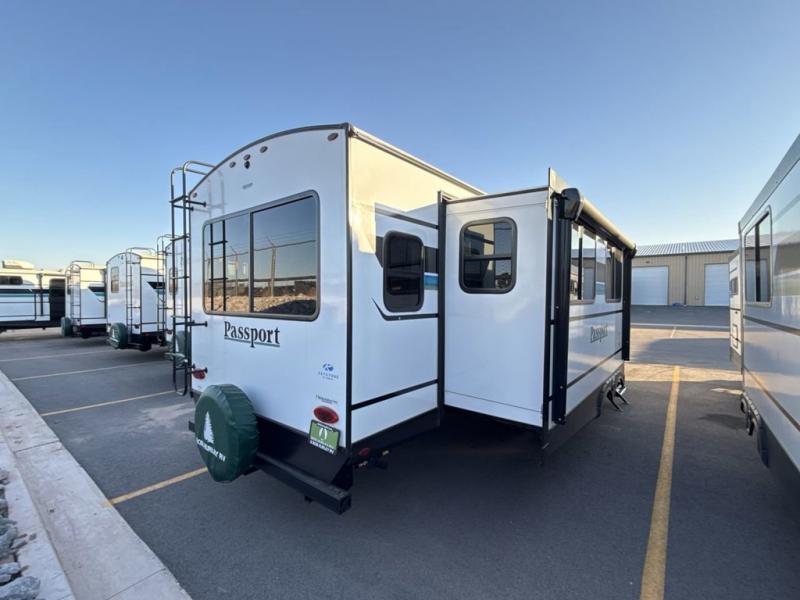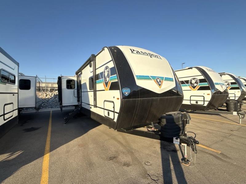 Each one of these Keystone RV Passport travel trailers offer grand style and multi-functional features! They have best-in-class storage for big things like paddle boards and small things like sleeping bags. There's no need for cordless drills and bending over to put the jacks down, simply push a button and the power stabilizer jacks do the rest. The one piece polypropylene underbelly and extended season camping package protects your units vitals in all weather conditions. Exclusive to Keystone is the Tru-fit slide construction and the Hyper Deck flooring which is more resilient, stronger and lighter than the traditional laminated wood construction, plus it resists water and water damage. Inside, you'll find residential durable Beauflor vinyl flooring, deluxe night shades, bedside outlets/USB ports, and a bath skylight for more natural light and additional head room.