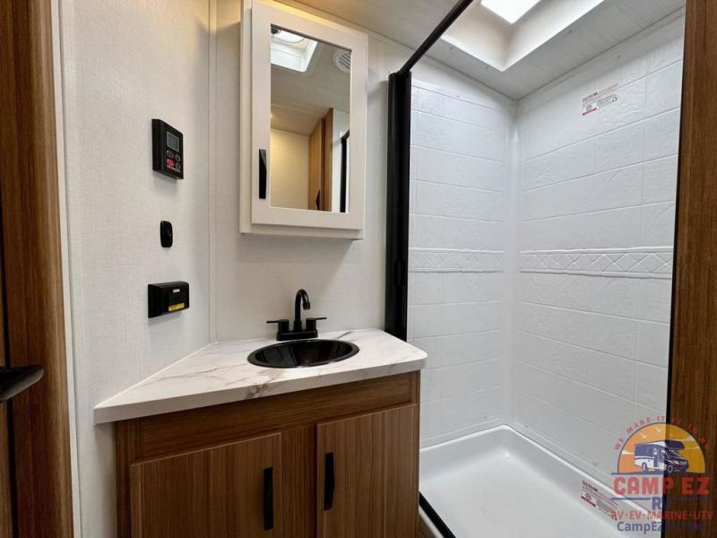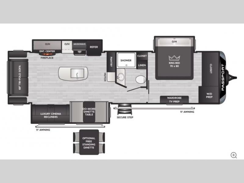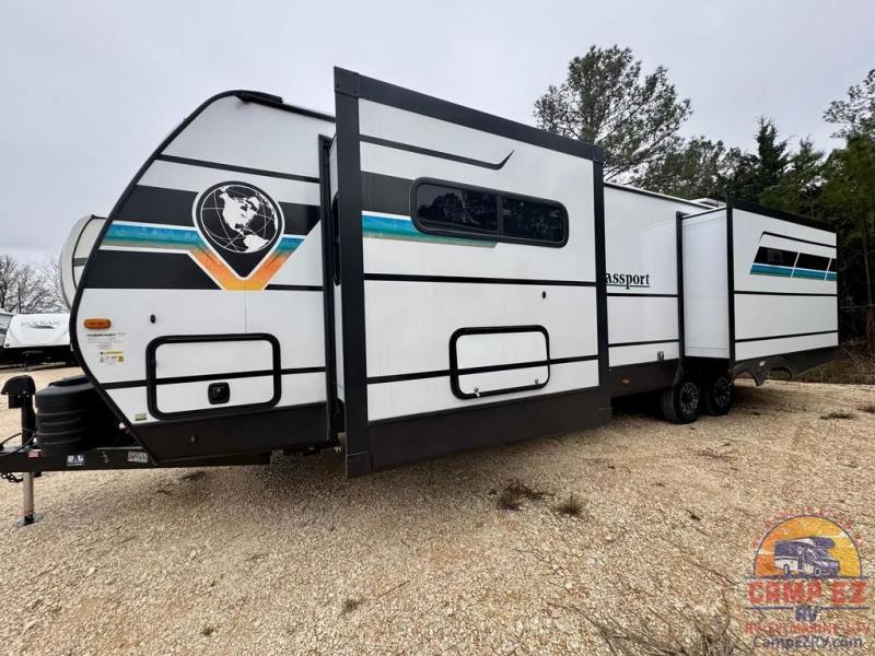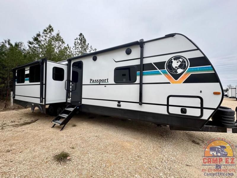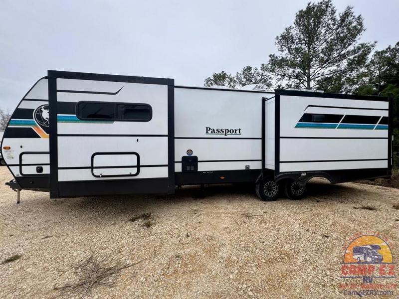 Each one of these Keystone RV Passport travel trailers offer grand style and multi-functional features! They have best-in-class storage for big things like paddle boards and small things like sleeping bags. There's no need for cordless drills and bending over to put the jacks down, simply push a button and the power stabilizer jacks do the rest. The one piece polypropylene underbelly and extended season camping package protects your units vitals in all weather conditions. Exclusive to Keystone is the Tru-fit slide construction and the Hyper Deck flooring which is more resilient, stronger and lighter than the traditional laminated wood construction, plus it resists water and water damage. Inside, you'll find residential durable Beauflor vinyl flooring, deluxe night shades, bedside outlets/USB ports, and a bath skylight for more natural light and additional head room.