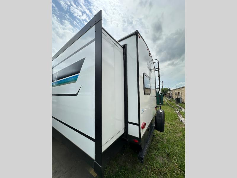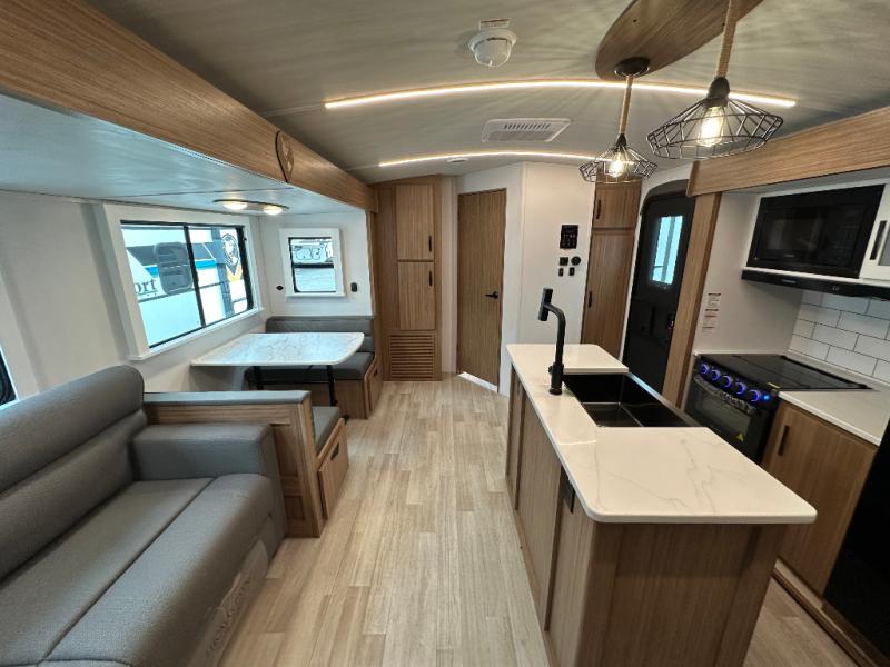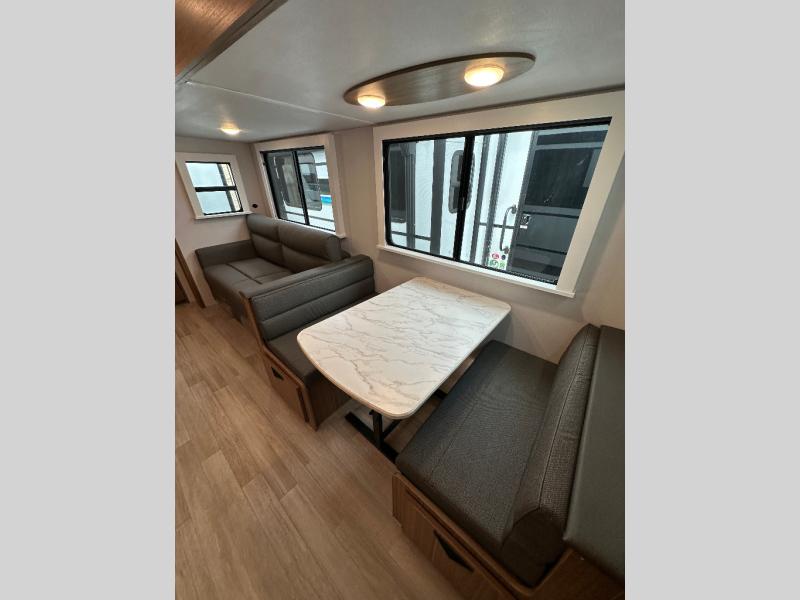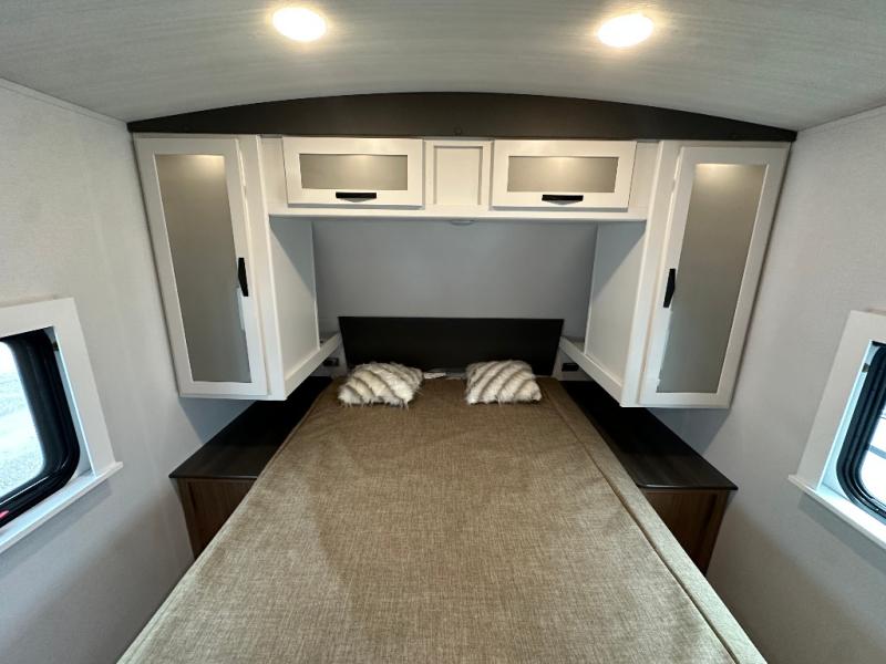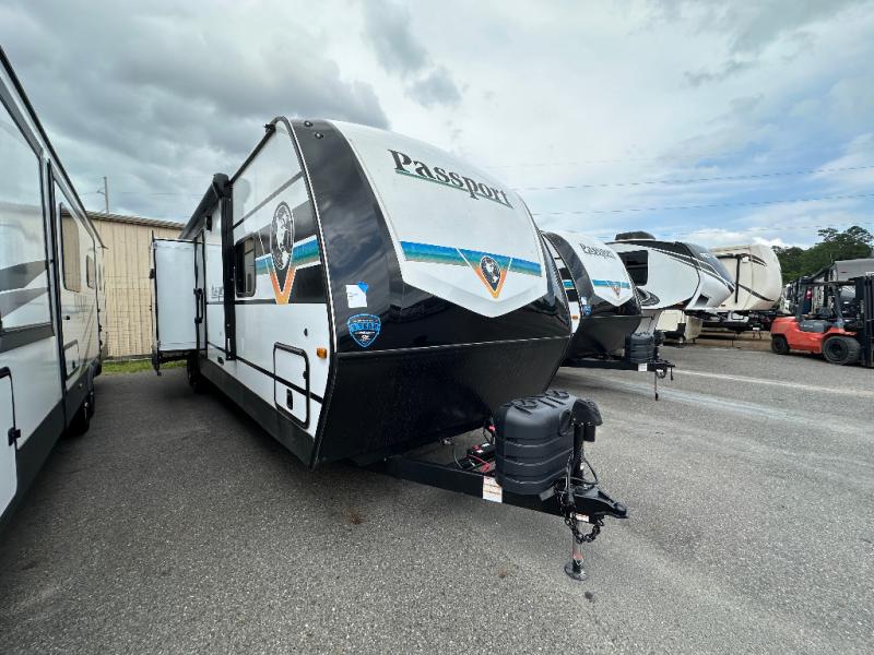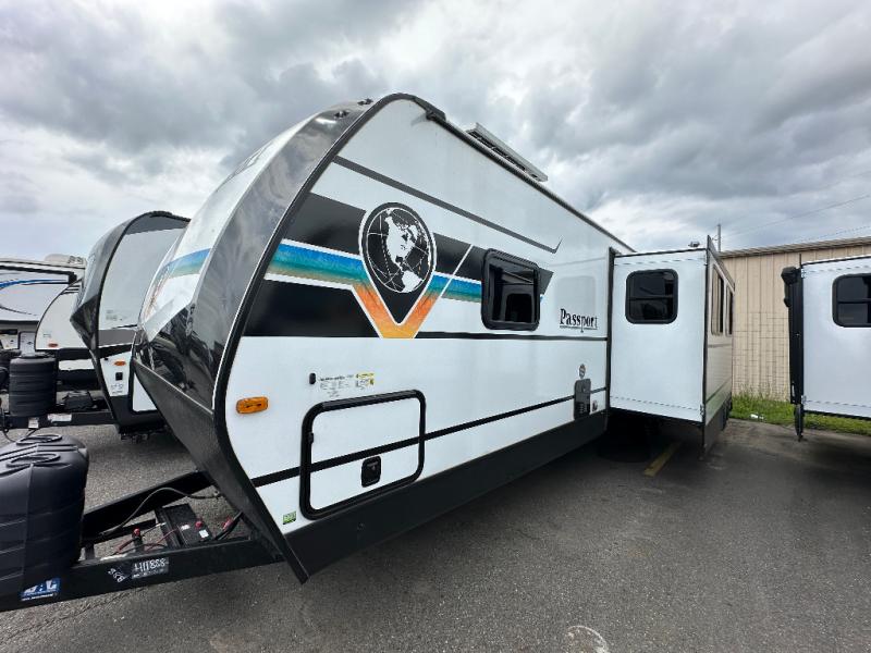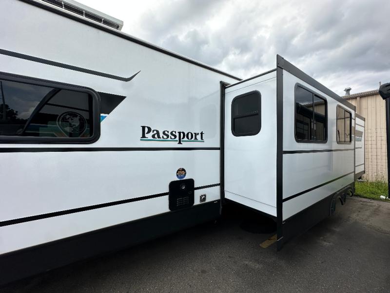 Each one of these Keystone RV Passport travel trailers offer grand style and multi-functional features! They have best-in-class storage for big things like paddle boards and small things like sleeping bags. There's no need for cordless drills and bending over to put the jacks down, simply push a button and the power stabilizer jacks do the rest. The one piece polypropylene underbelly and extended season camping package protects your units vitals in all weather conditions. Exclusive to Keystone is the Tru-fit slide construction and the Hyper Deck flooring which is more resilient, stronger and lighter than the traditional laminated wood construction, plus it resists water and water damage. Inside, you'll find residential durable Beauflor vinyl flooring, deluxe night shades, bedside outlets/USB ports, and a bath skylight for more natural light and additional head room.