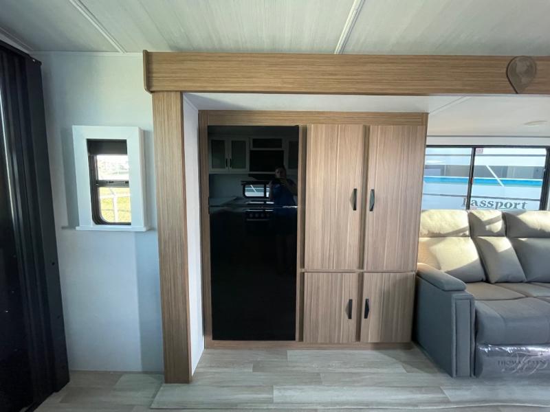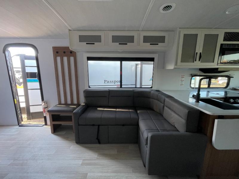 Each one of these Keystone RV Passport travel trailers offer grand style and multi-functional features! They have best-in-class storage for big things like paddle boards and small things like sleeping bags. There's no need for cordless drills and bending over to put the jacks down, simply push a button and the power stabilizer jacks do the rest. The one piece polypropylene underbelly and extended season camping package protects your units vitals in all weather conditions. Exclusive to Keystone is the Tru-fit slide construction and the Hyper Deck flooring which is more resilient, stronger and lighter than the traditional laminated wood construction, plus it resists water and water damage. Inside, you'll find residential durable Beauflor vinyl flooring, deluxe night shades, bedside outlets/USB ports, and a bath skylight for more natural light and additional head room.