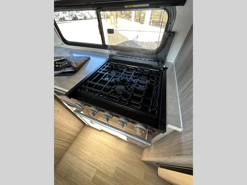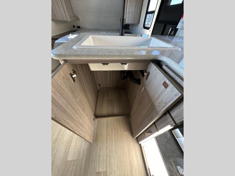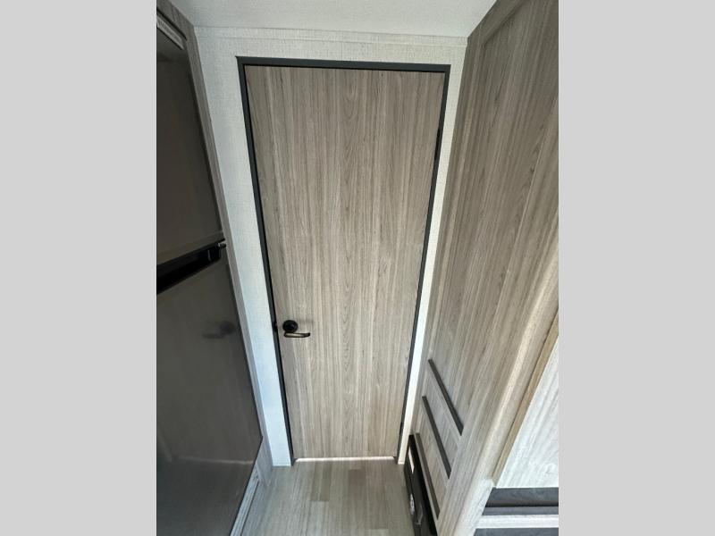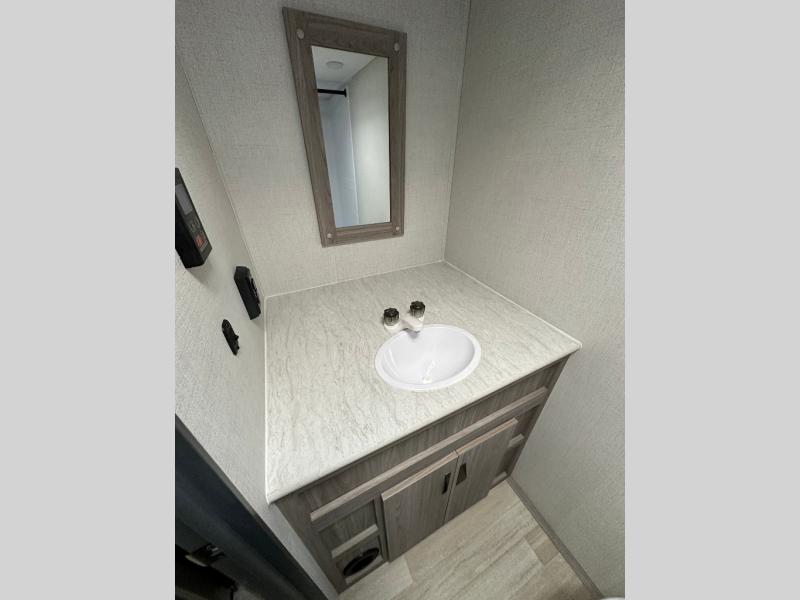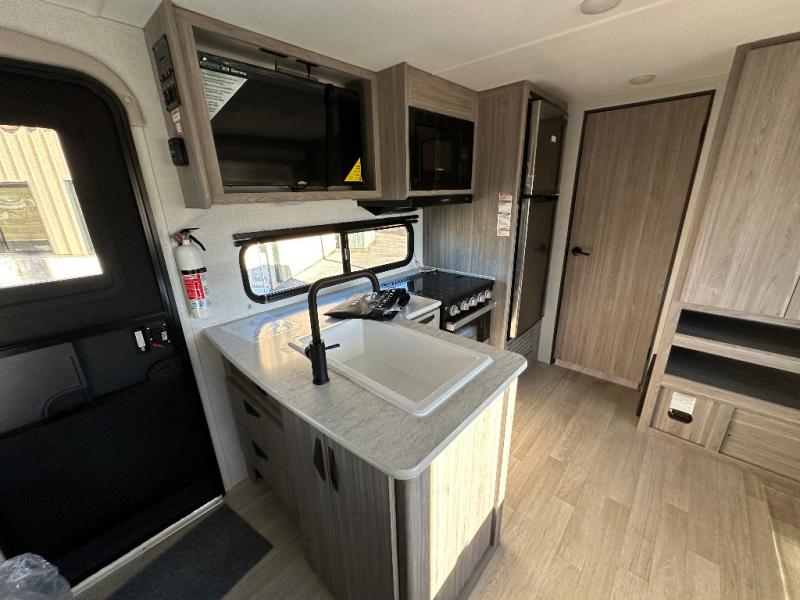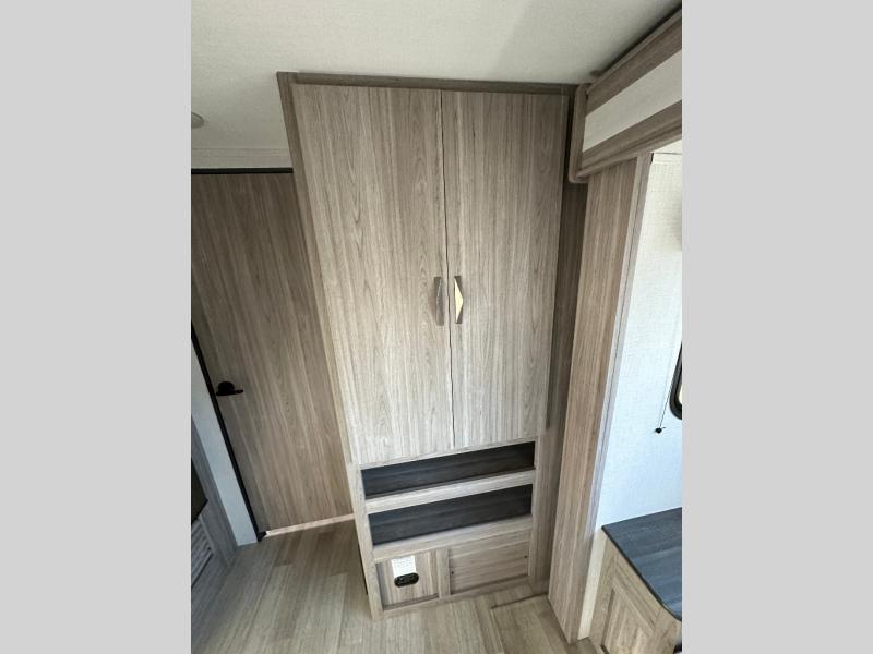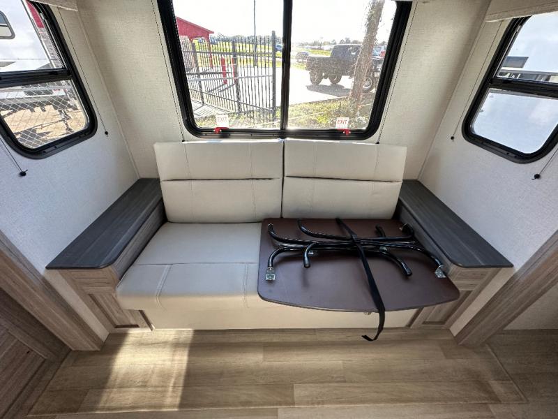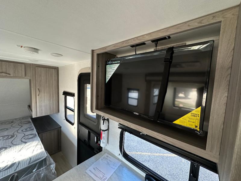 This is the perfect couple's trailer for weekend trips to the campground. You can set up the patio awning when you arrive, then unload the pass-thru storage before heading out on a trail. The full rear bath inside will let you freshen up when you get back, and there is a jack knife sofa slide where you can relax in the air conditioning. A two burner range and microwave oven lets you make dinner when you're hungry, and a large double door 12V refrigerator will be perfect to keep food fresh. This unit also includes a front queen bed with dual wardrobes and nightstands plus a privacy curtain if you have someone staying over on the sofa!