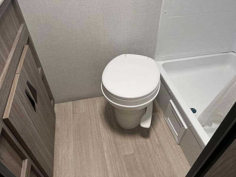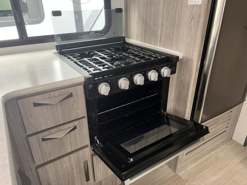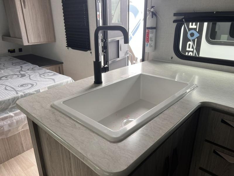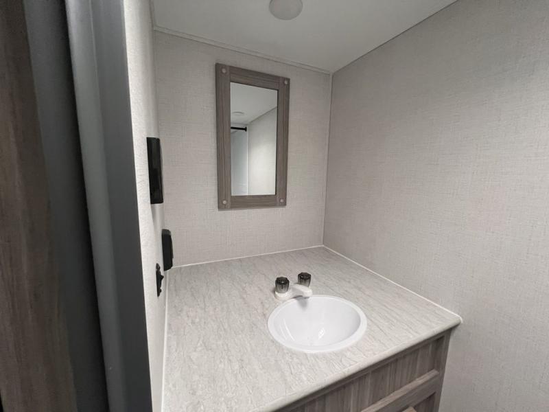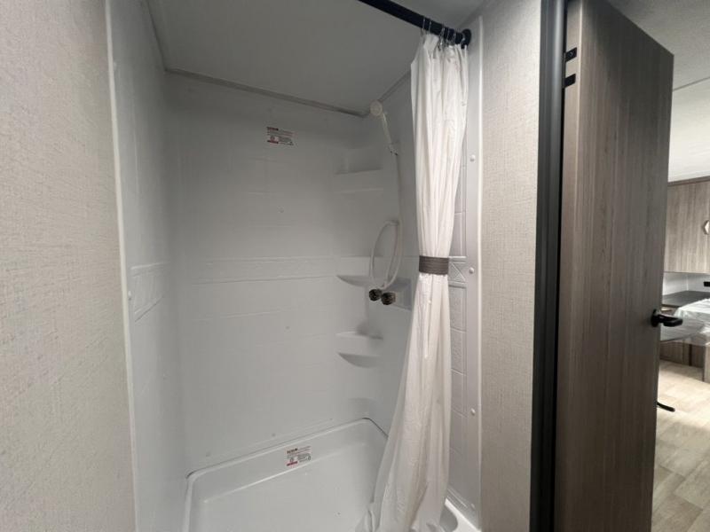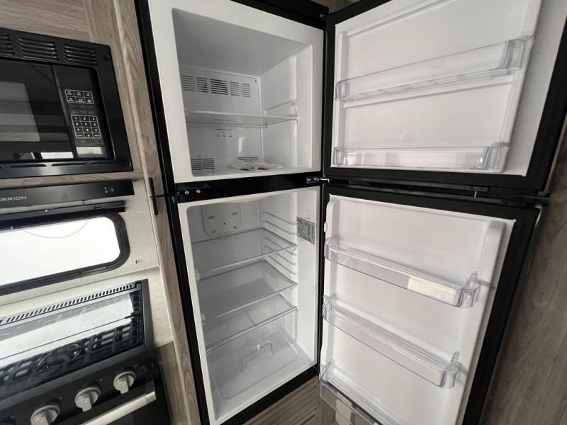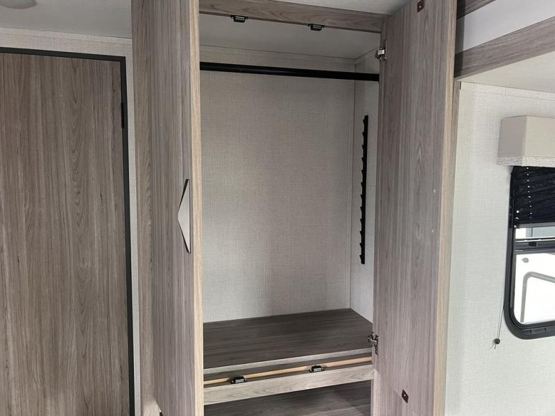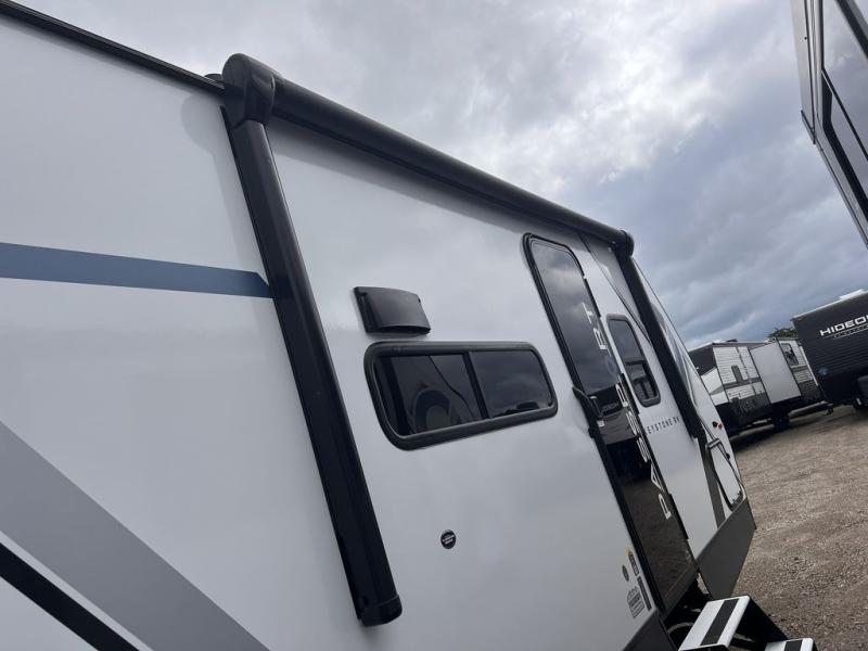 This is the perfect couple's trailer for weekend trips to the campground. You can set up the patio awning when you arrive, then unload the pass-thru storage before heading out on a trail. The full rear bath inside will let you freshen up when you get back, and there is a jack knife sofa slide where you can relax in the air conditioning. A two burner range and microwave oven lets you make dinner when you're hungry, and a large double door 12V refrigerator will be perfect to keep food fresh. This unit also includes a front queen bed with dual wardrobes and nightstands plus a privacy curtain if you have someone staying over on the sofa!