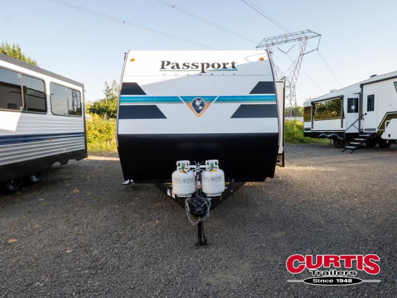 Comfort is found all throughout each one of these Keystone RV Passport Classic travel trailers! They are built with a one-piece polypropylene underbelly to protect your unit's vitals, and a seamless, laminated and gel-coated filon exterior that is sure to turn heads at the campsite. A fully walkable roof makes it easy to access when needed, and the leaf spring straight axles help provide smooth towing. The residential durable Beauflor vinyl flooring throughout and the seamless kitchen countertops will be easy to clean, and you can stay cool on a hot summer day with the 15K BTU A/C. Come find the Passport Classic that fits your needs best!