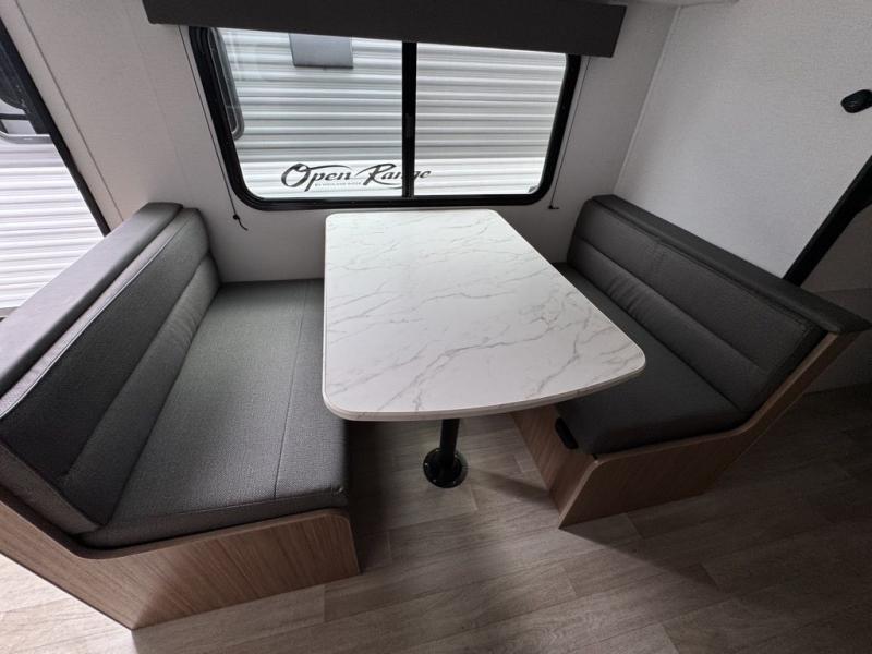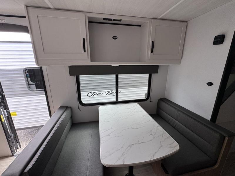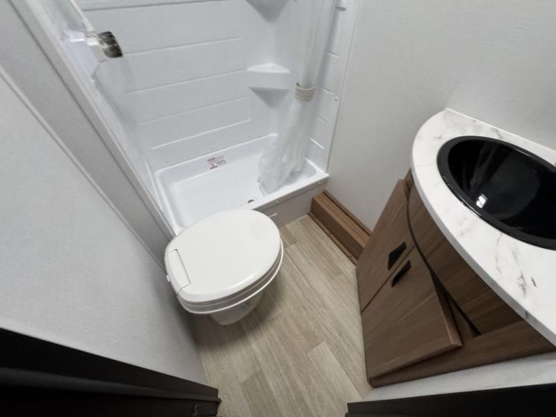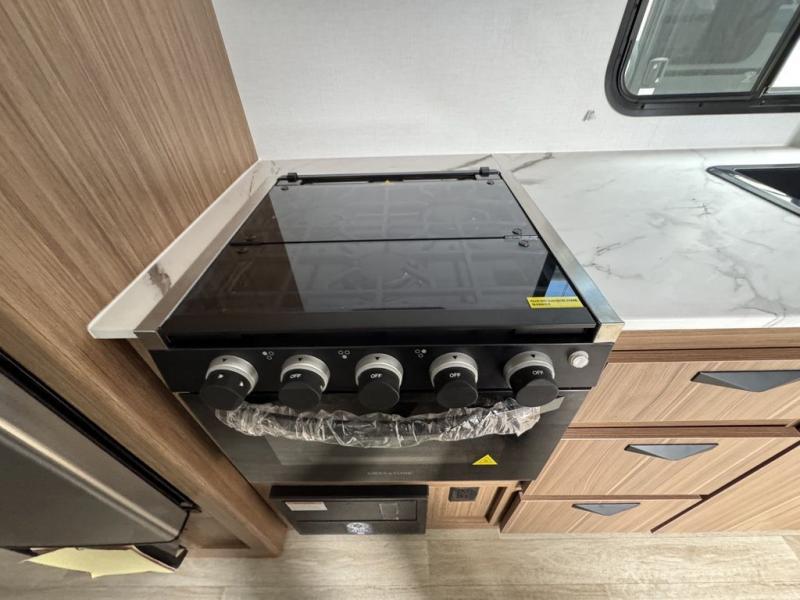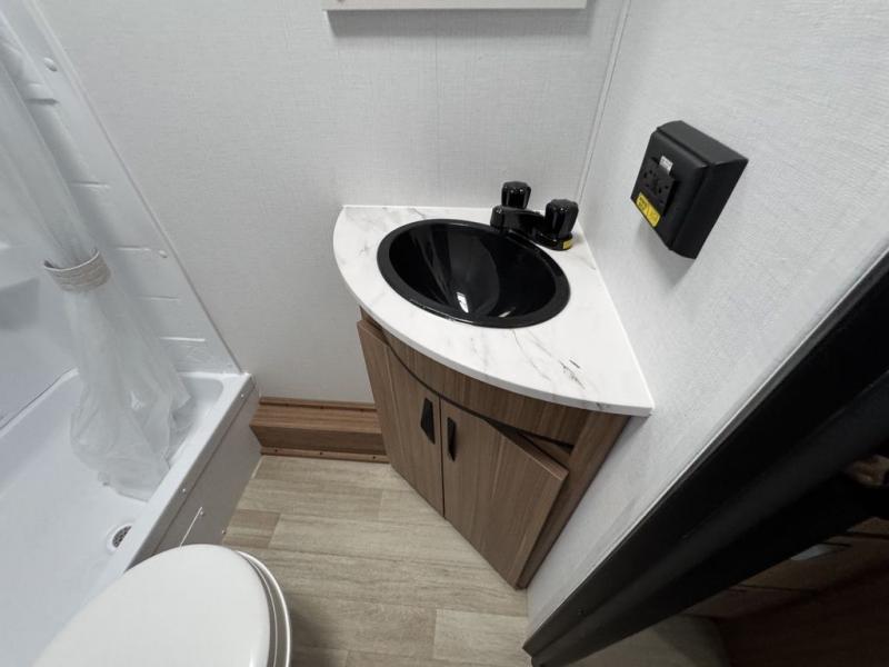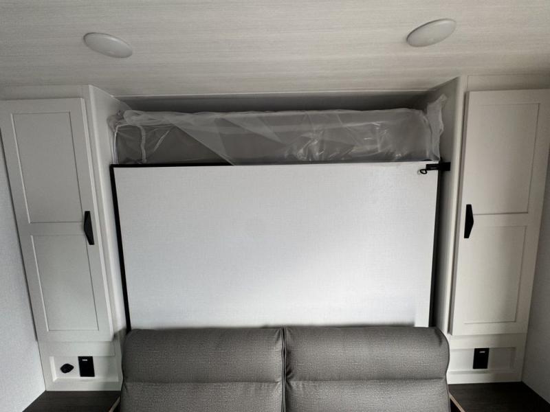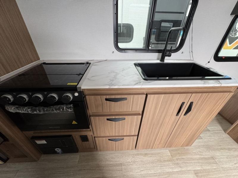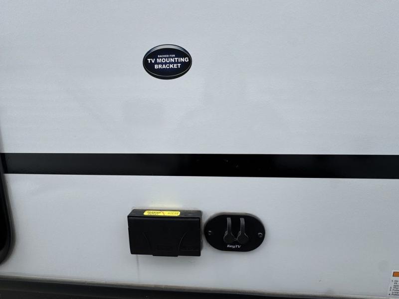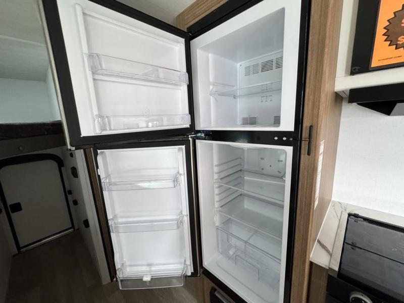 Your kids will love this travel trailer! The double-size bunks provide comfortable sleeping quarters, while the booth dinette offers a cozy spot for meals and relaxation. The full bathroom features everything you need to take care of yourself and is convenient on the go, plus, a refrigerator, microwave, and two-burner cooktop make meal prep a breeze. The overhead cabinets and pantry provide ample storage for your favorite spices and belongings. Moreover, the murphy bed offers additional sleeping space, and the wardrobe and nightstand on each side of the bed provide convenient storage and comfort. On the outside, you will find A 17' awning that provides shade and protection, while pass-thru storage offers additional space for gear and equipment.