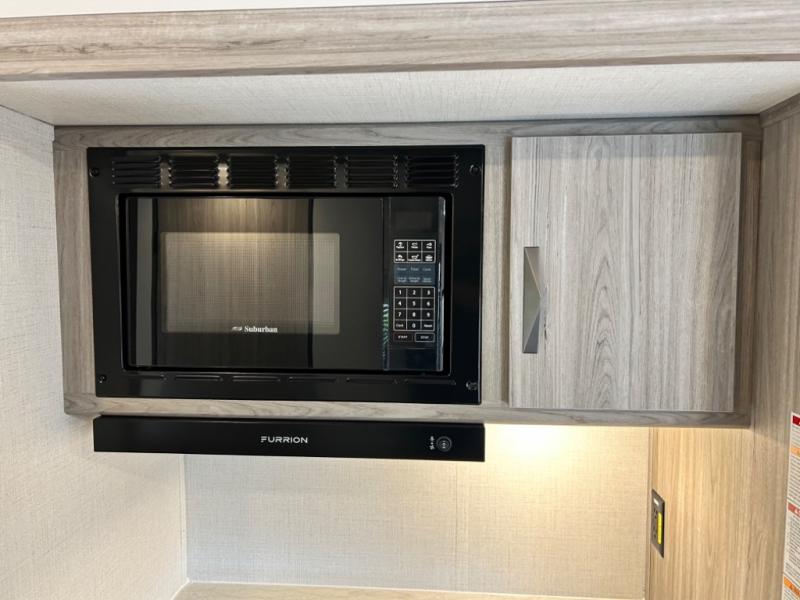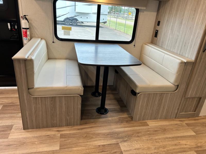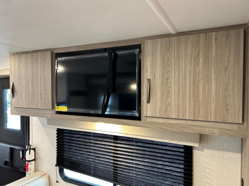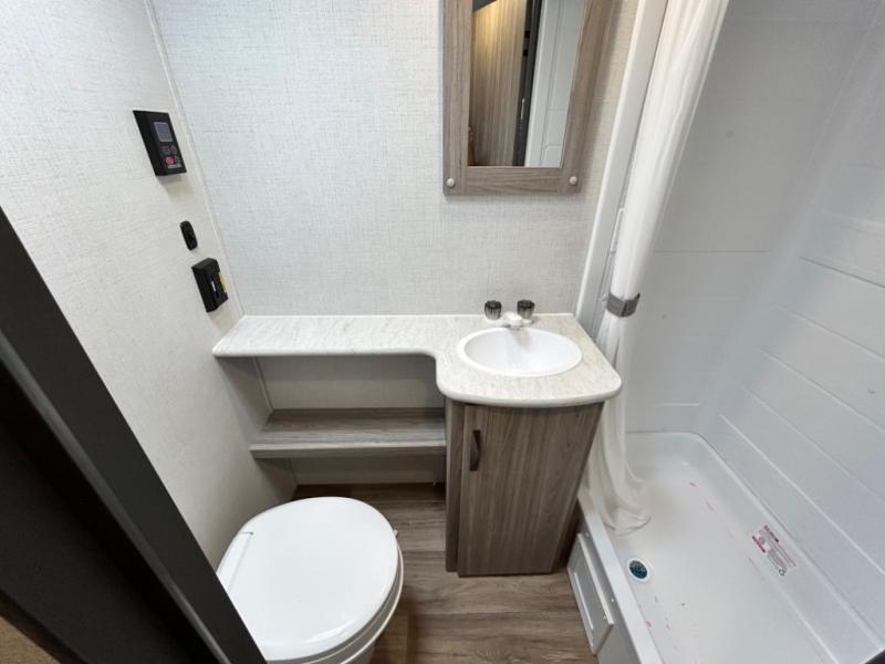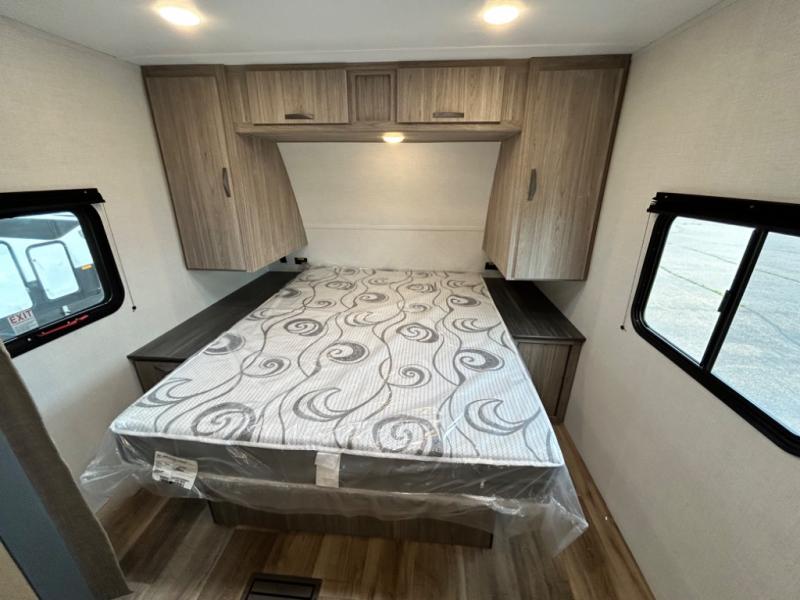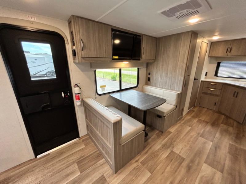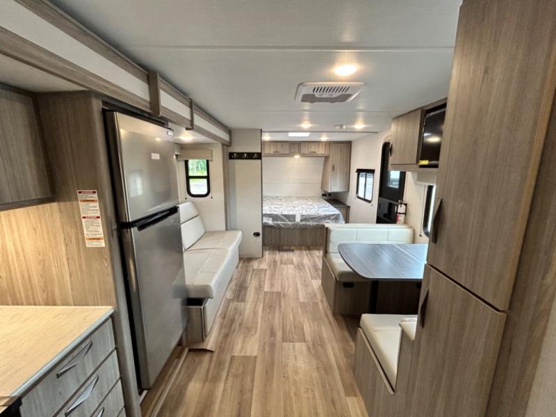 Are you ready to escape the hustle and bustle of the city life? This travel trailer will provide at-home comforts while at the campground! You will have a front queen bed with dual nightstands and wardrobes to keep your space tidy plus a privacy curtain that can be closed off if you have guests staying over on the jack knife sofa and booth dinette. The large slide out will let everyone move about freely, and the full bath onboard is sure to be appreciated. And don't overlook the rear corner kitchen with ample counter space to prep meals!