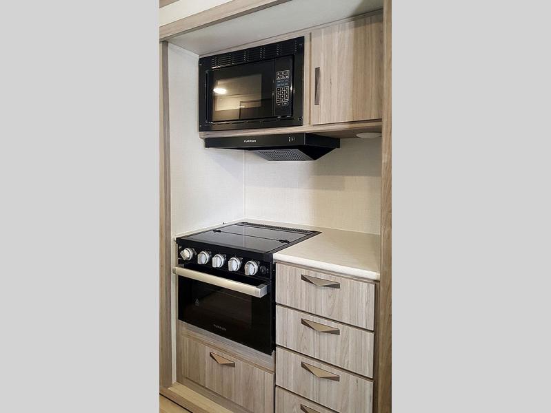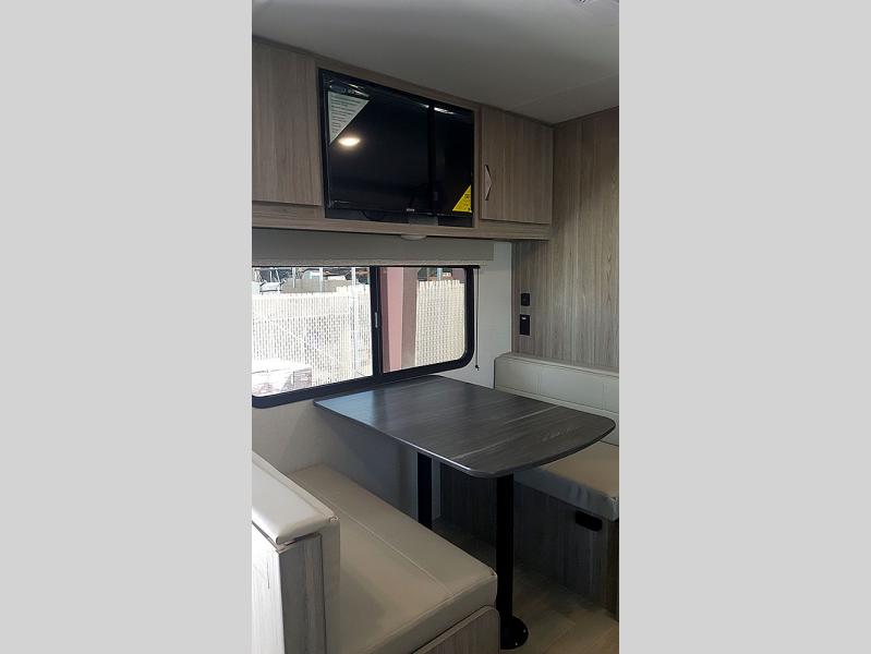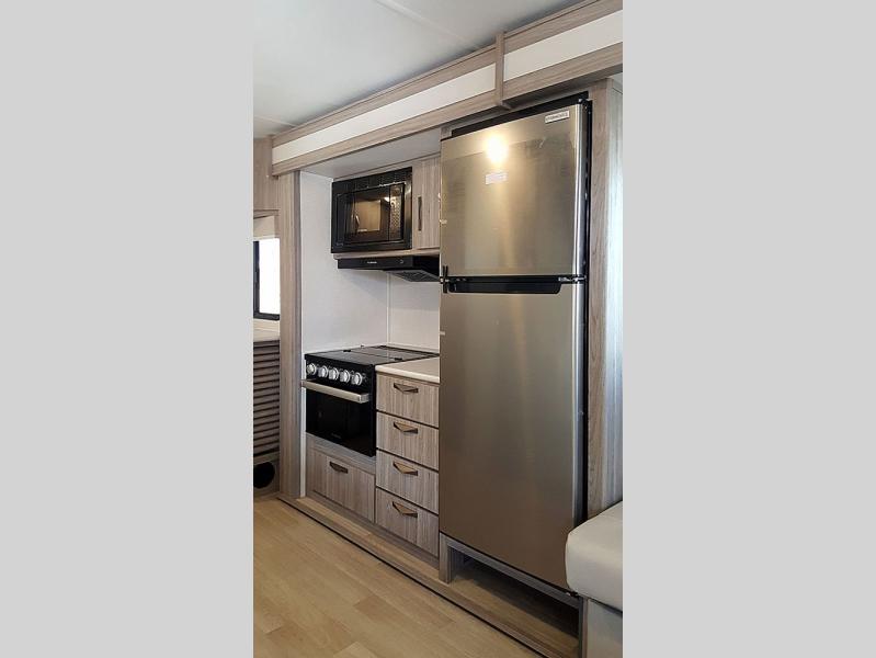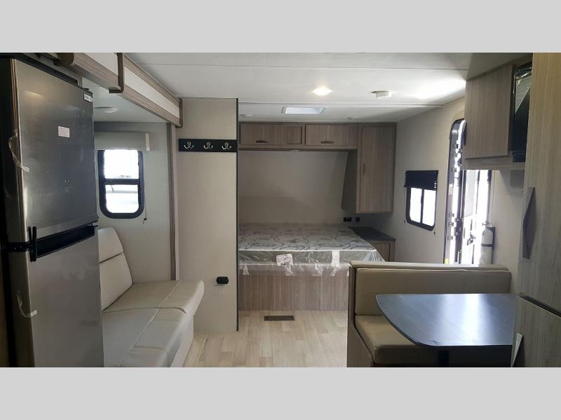 Are you ready to escape the hustle and bustle of the city life? This travel trailer will provide at-home comforts while at the campground! You will have a front queen bed with dual nightstands and wardrobes to keep your space tidy plus a privacy curtain that can be closed off if you have guests staying over on the jack knife sofa and booth dinette. The large slide out will let everyone move about freely, and the full bath onboard is sure to be appreciated. And don't overlook the rear corner kitchen with ample counter space to prep meals!
