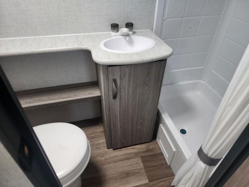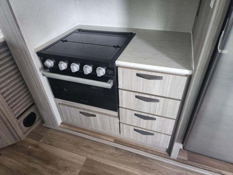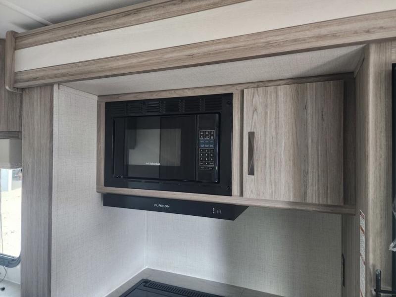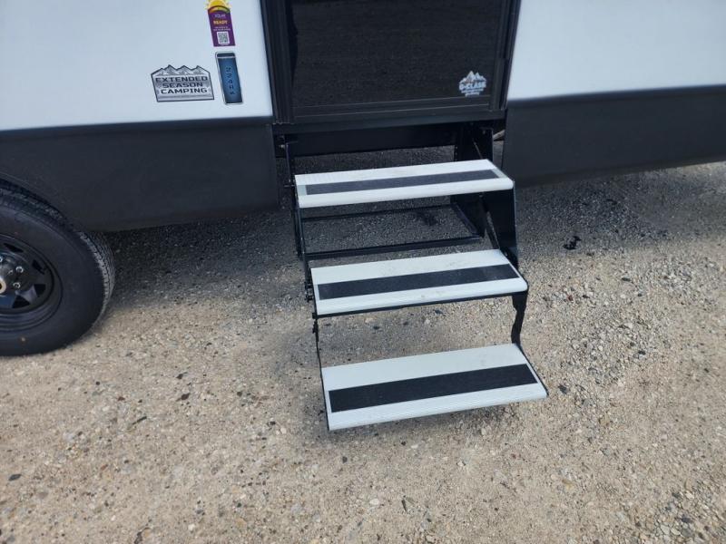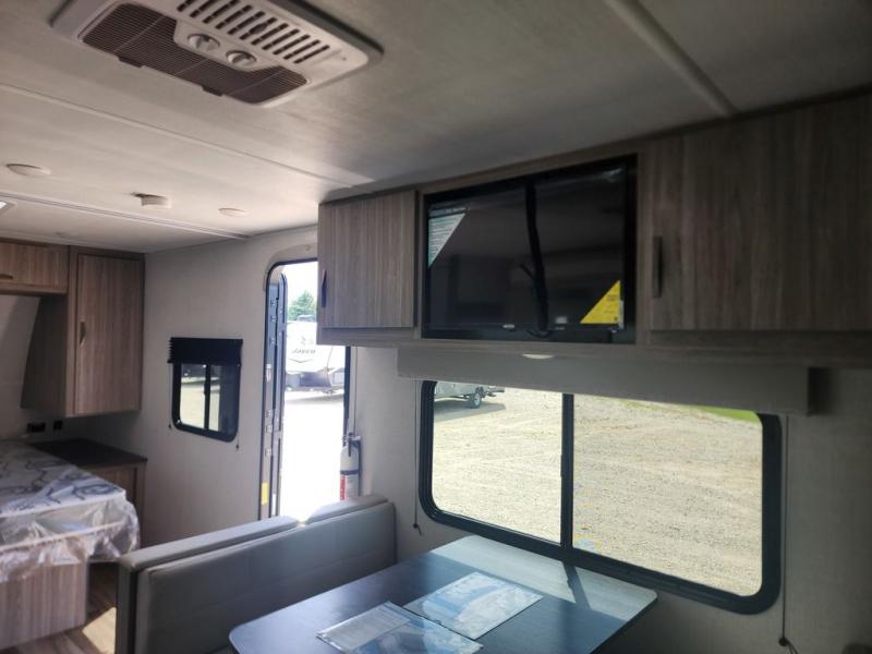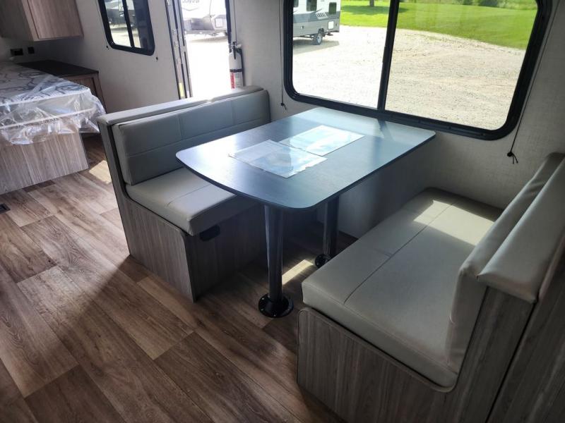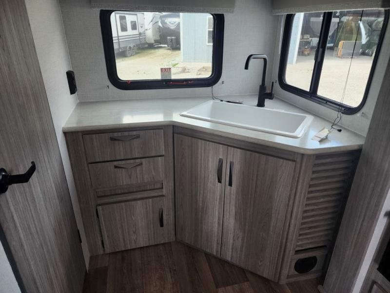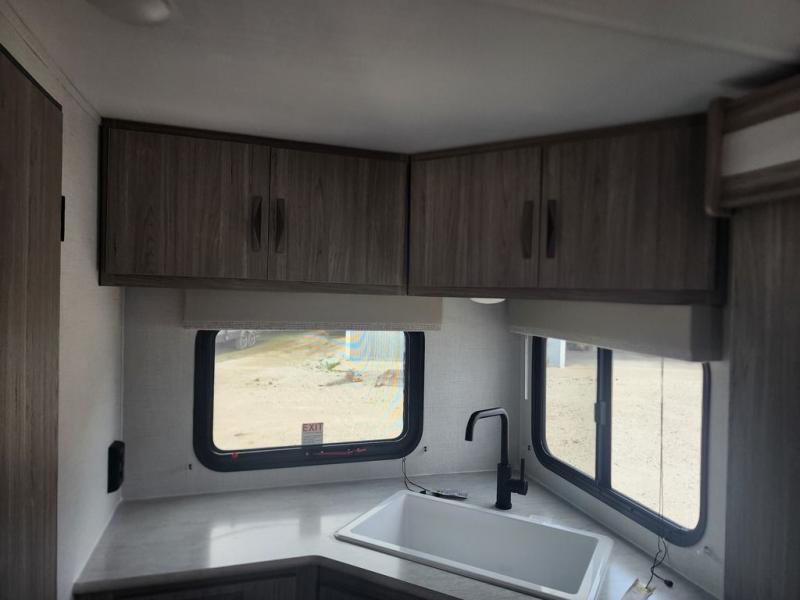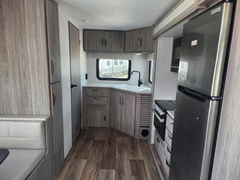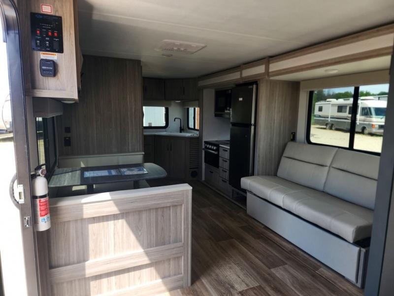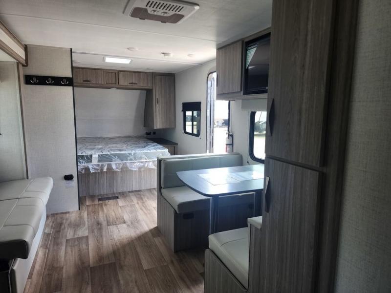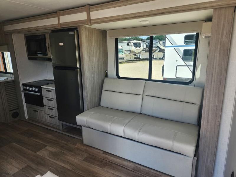 Are you ready to escape the hustle and bustle of the city life? This travel trailer will provide at-home comforts while at the campground! You will have a front queen bed with dual nightstands and wardrobes to keep your space tidy plus a privacy curtain that can be closed off if you have guests staying over on the jack knife sofa and booth dinette. The large slide out will let everyone move about freely, and the full bath onboard is sure to be appreciated. And don't overlook the rear corner kitchen with ample counter space to prep meals!