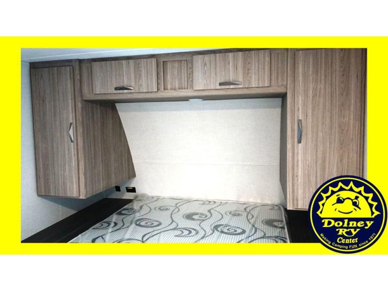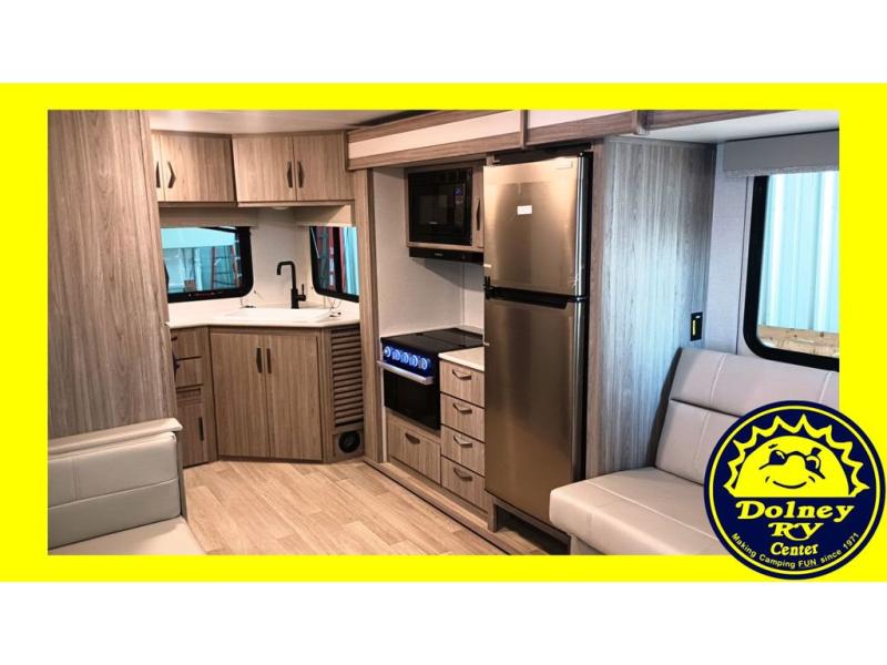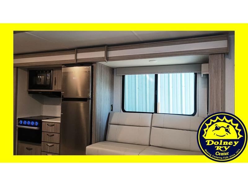 Are you ready to escape the hustle and bustle of the city life? This travel trailer will provide at-home comforts while at the campground! You will have a front queen bed with dual nightstands and wardrobes to keep your space tidy plus a privacy curtain that can be closed off if you have guests staying over on the jack knife sofa and booth dinette. The large slide out will let everyone move about freely, and the full bath onboard is sure to be appreciated. And don't overlook the rear corner kitchen with ample counter space to prep meals!