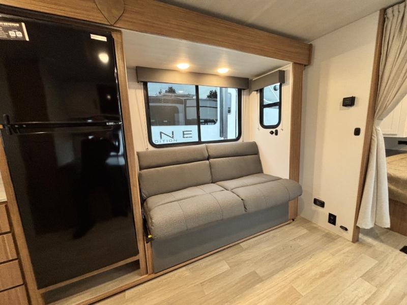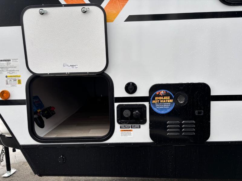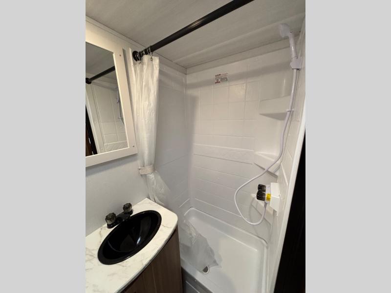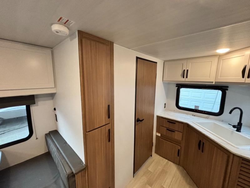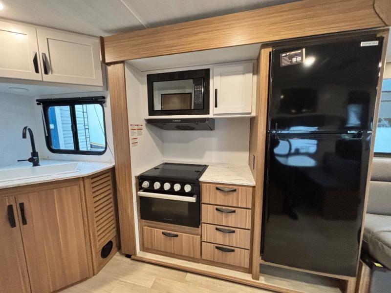 Are you ready to escape the hustle and bustle of the city life? This travel trailer will provide at-home comforts while at the campground! You will have a front queen bed with dual nightstands and wardrobes to keep your space tidy plus a privacy curtain that can be closed off if you have guests staying over on the jack knife sofa and booth dinette. The large slide out will let everyone move about freely, and the full bath onboard is sure to be appreciated. And don't overlook the rear corner kitchen with ample counter space to prep meals!