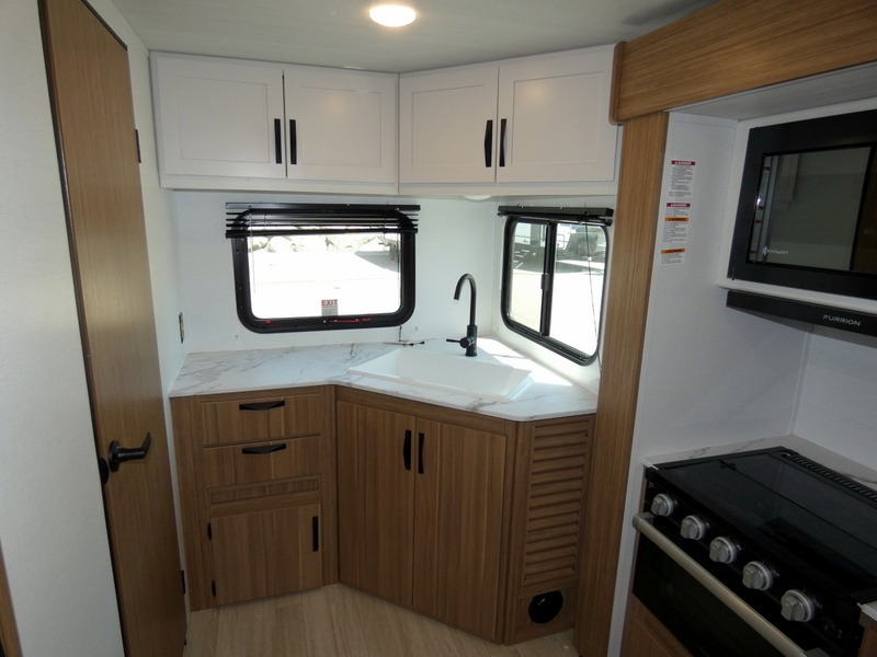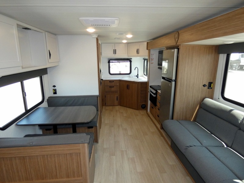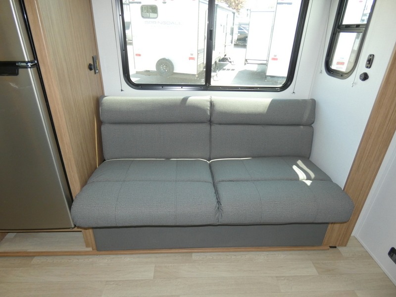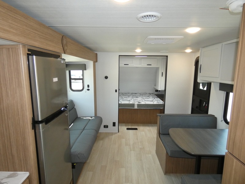 Are you ready to escape the hustle and bustle of the city life? This travel trailer will provide at-home comforts while at the campground! You will have a front queen bed with dual nightstands and wardrobes to keep your space tidy plus a privacy curtain that can be closed off if you have guests staying over on the jack knife sofa and booth dinette. The large slide out will let everyone move about freely, and the full bath onboard is sure to be appreciated. And don't overlook the rear corner kitchen with ample counter space to prep meals!