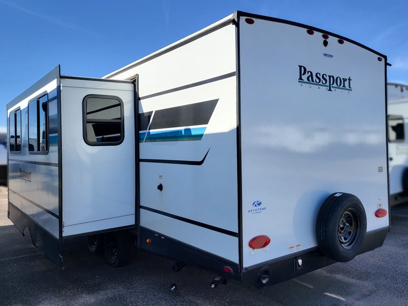 Comfort is found all throughout each one of these Keystone RV Passport Classic travel trailers! They are built with a one-piece polypropylene underbelly to protect your unit's vitals, and a seamless, laminated and gel-coated filon exterior that is sure to turn heads at the campsite. A fully walkable roof makes it easy to access when needed, and the leaf spring straight axles help provide smooth towing. The residential durable Beauflor vinyl flooring throughout and the seamless kitchen countertops will be easy to clean, and you can stay cool on a hot summer day with the 15K BTU A/C. Come find the Passport Classic that fits your needs best!