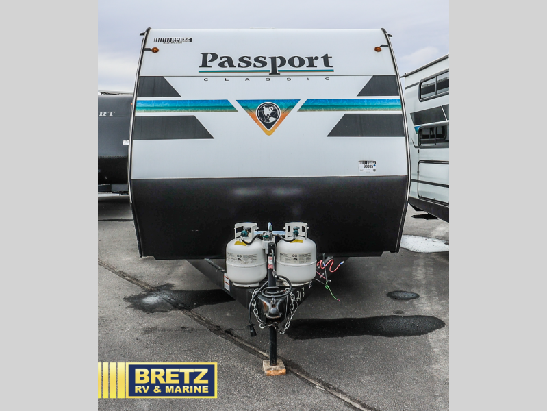 Comfort is found all throughout each one of these Keystone RV Passport Classic travel trailers! They are built with a one-piece polypropylene underbelly to protect your unit's vitals, and a seamless, laminated and gel-coated filon exterior that is sure to turn heads at the campsite. A fully walkable roof makes it easy to access when needed, and the leaf spring straight axles help provide smooth towing. The residential durable Beauflor vinyl flooring throughout and the seamless kitchen countertops will be easy to clean, and you can stay cool on a hot summer day with the 15K BTU A/C. Come find the Passport Classic that fits your needs best!