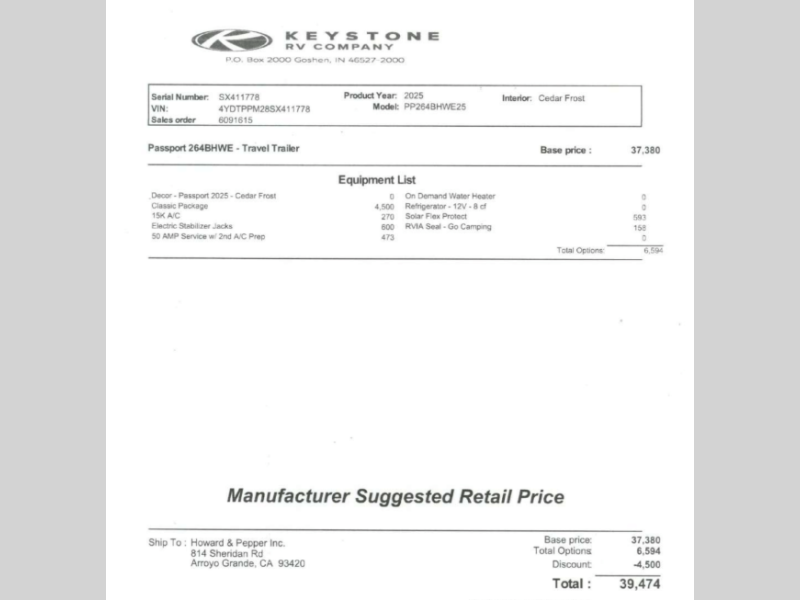 New 2025 Keystone RV Passport Classic 264BHWE Travel Trailer