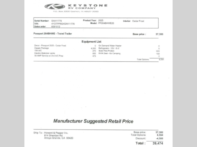New 2025 Keystone RV Passport Classic 264BHWE Travel Trailer