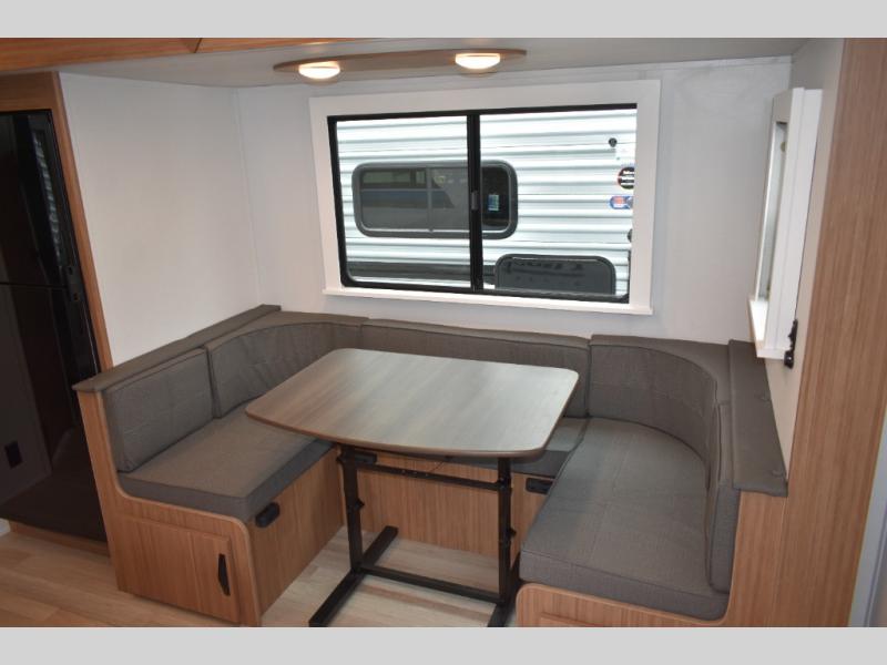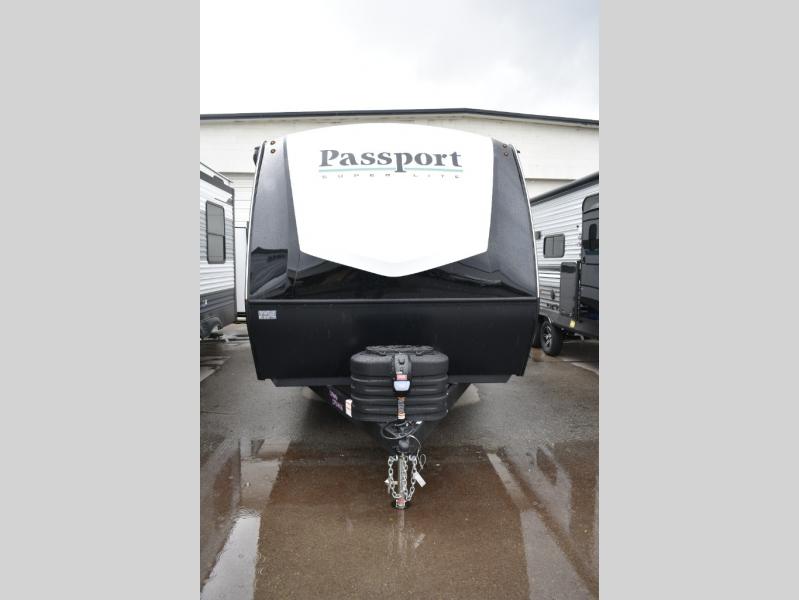 With any Keystone Passport Super Lite travel trailer you will enjoy lightweight towing and lots of interior comforts! The power tongue jack lets you hitch up at the drop of a hat, and the Dexter torsion axle rubber ride suspension will make towing easier than ever. You will appreciate having power stabilizer jacks for quick setup and an exterior convenience center to monitor tank levels. These trailers are constructed with a seamless, laminated and gel-coated filon exterior, 80% tinted safety glass windows, and a one-piece polypropylene underbelly. The interior will have you feeling right at home with residential durable Beauflor vinyl flooring, deluxe night shades, LED lighting throughout, and seamless kitchen countertops to name a few comforts.