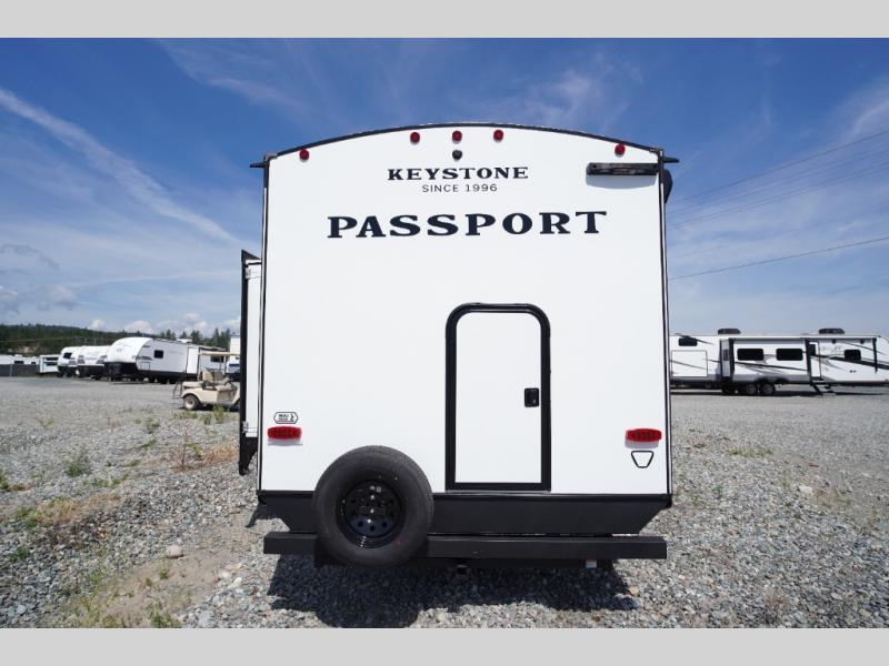 With any Keystone Passport Super Lite travel trailer you will enjoy lightweight towing and lots of interior comforts! The power tongue jack lets you hitch up at the drop of a hat, and the Dexter torsion axle rubber ride suspension will make towing easier than ever. You will appreciate having power stabilizer jacks for quick setup and an exterior convenience center to monitor tank levels. These trailers are constructed with a seamless, laminated and gel-coated filon exterior, 80% tinted safety glass windows, and a one-piece polypropylene underbelly. The interior will have you feeling right at home with residential durable Beauflor vinyl flooring, deluxe night shades, LED lighting throughout, and seamless kitchen countertops to name a few comforts.