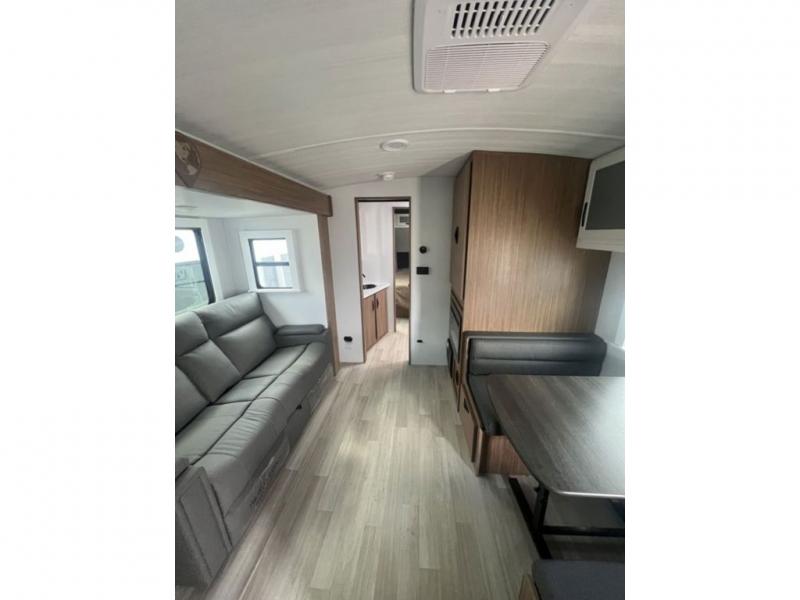 With any Keystone Passport Super Lite travel trailer you will enjoy lightweight towing and lots of interior comforts! The power tongue jack lets you hitch up at the drop of a hat, and the Dexter torsion axle rubber ride suspension will make towing easier than ever. You will appreciate having power stabilizer jacks for quick setup and an exterior convenience center to monitor tank levels. These trailers are constructed with a seamless, laminated and gel-coated filon exterior, 80% tinted safety glass windows, and a one-piece polypropylene underbelly. The interior will have you feeling right at home with residential durable Beauflor vinyl flooring, deluxe night shades, LED lighting throughout, and seamless kitchen countertops to name a few comforts.