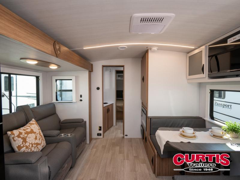 With any Keystone Passport Super Lite travel trailer you will enjoy lightweight towing and lots of interior comforts! The power tongue jack lets you hitch up at the drop of a hat, and the Dexter torsion axle rubber ride suspension will make towing easier than ever. You will appreciate having power stabilizer jacks for quick setup and an exterior convenience center to monitor tank levels. These trailers are constructed with a seamless, laminated and gel-coated filon exterior, 80% tinted safety glass windows, and a one-piece polypropylene underbelly. The interior will have you feeling right at home with residential durable Beauflor vinyl flooring, deluxe night shades, LED lighting throughout, and seamless kitchen countertops to name a few comforts.