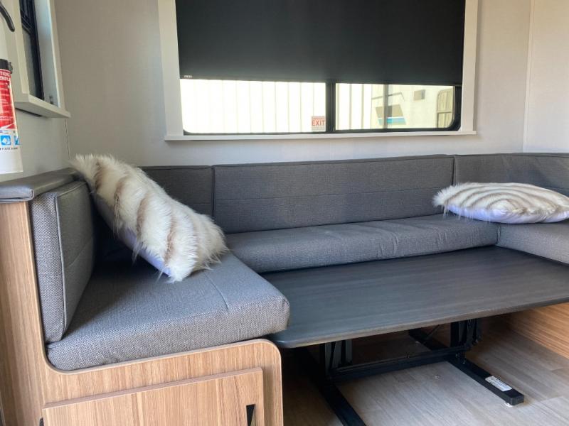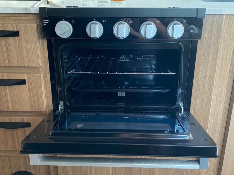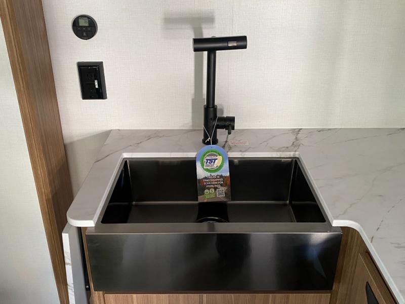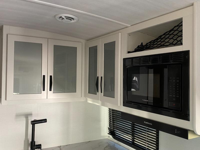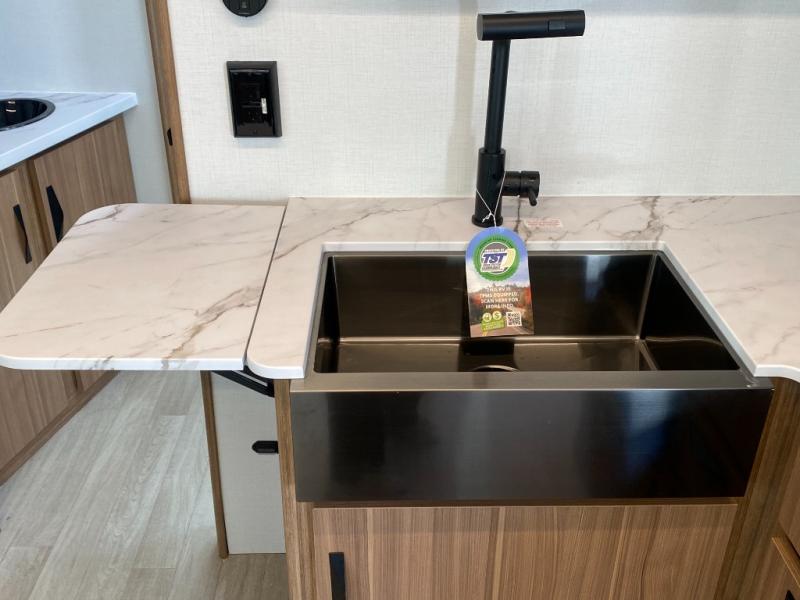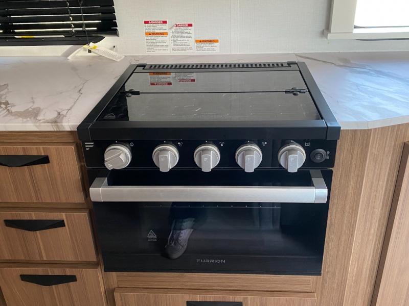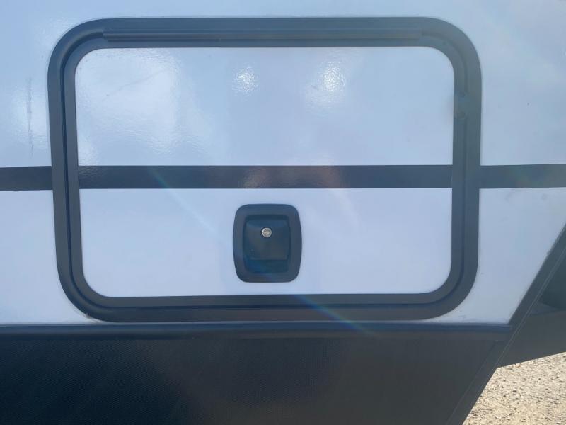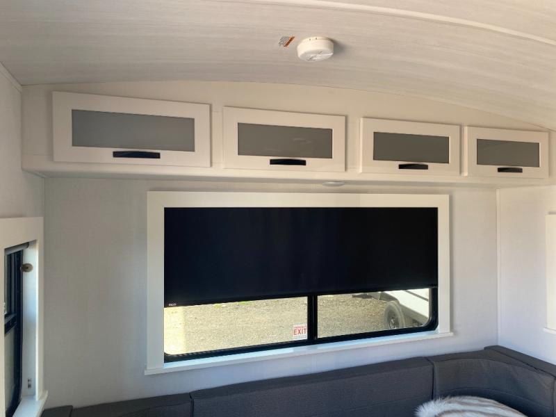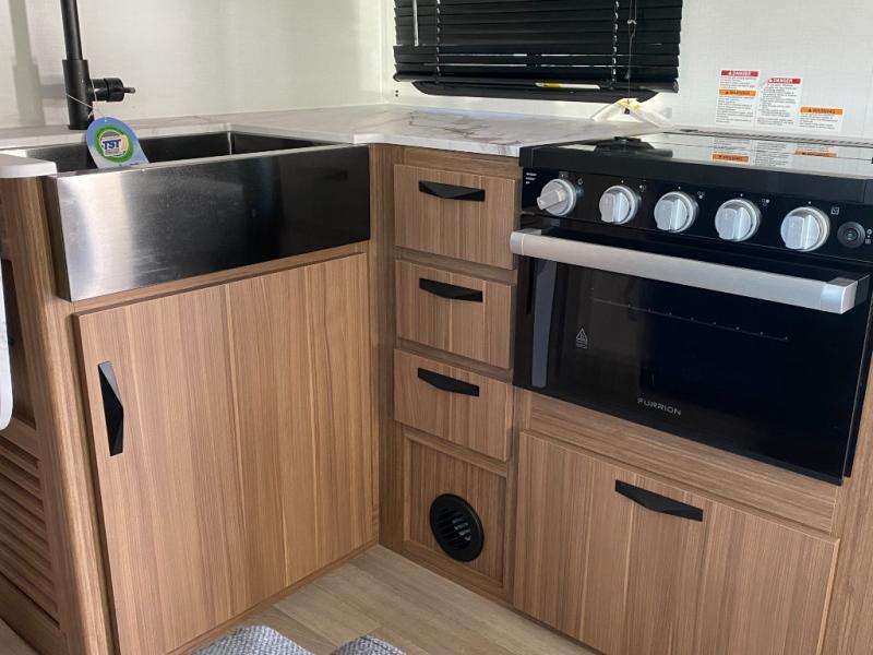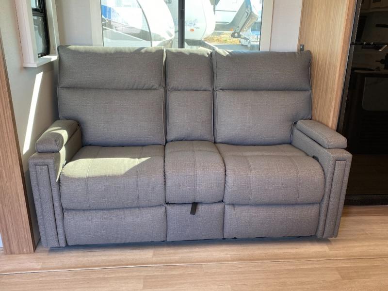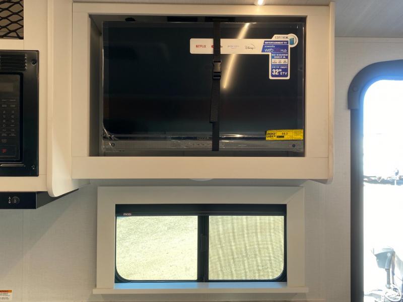 If you're looking to upgrade from a tent to a travel trailer, the time is now with this model! You will love having your own master bedroom up front with a queen bed, dual bedroom wardrobes and your own exterior entry door. The second entry door leads right into the combined kitchen and living area for added convenience. Your crew can dine or play a game around the do-more dinette table or relax on the tri-fold sofa across from the entertainment center. These pieces of furniture will also double as your guests' sleeping space at night, and you have the option to choose luxury cinema recliners in place of the sofa if you don't need that much sleeping room. There is also a full walk-through bath to clean up in each day plus a fully-equipped kitchen to make meals!