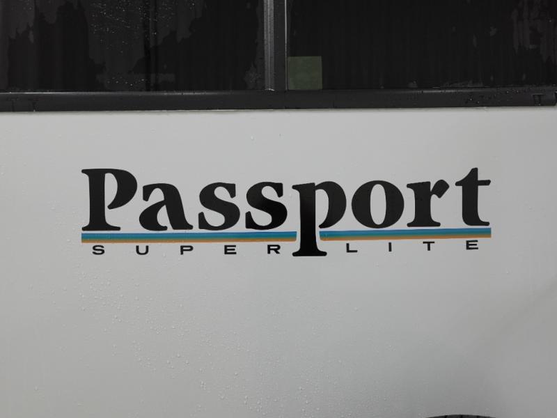 With any Keystone Passport Super Lite travel trailer you will enjoy lightweight towing and lots of interior comforts! The power tongue jack lets you hitch up at the drop of a hat, and the Dexter torsion axle rubber ride suspension will make towing easier than ever. You will appreciate having power stabilizer jacks for quick setup and an exterior convenience center to monitor tank levels. These trailers are constructed with a seamless, laminated and gel-coated filon exterior, 80% tinted safety glass windows, and a one-piece polypropylene underbelly. The interior will have you feeling right at home with residential durable Beauflor vinyl flooring, deluxe night shades, LED lighting throughout, and seamless kitchen countertops to name a few comforts.