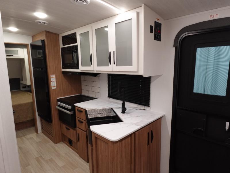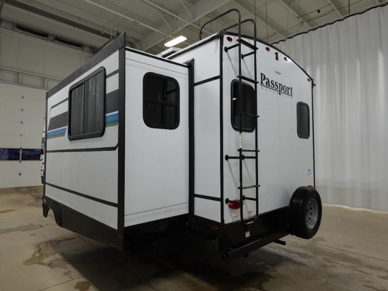 With any Keystone Passport Super Lite travel trailer you will enjoy lightweight towing and lots of interior comforts! The power tongue jack lets you hitch up at the drop of a hat, and the Dexter torsion axle rubber ride suspension will make towing easier than ever. You will appreciate having power stabilizer jacks for quick setup and an exterior convenience center to monitor tank levels. These trailers are constructed with a seamless, laminated and gel-coated filon exterior, 80% tinted safety glass windows, and a one-piece polypropylene underbelly. The interior will have you feeling right at home with residential durable Beauflor vinyl flooring, deluxe night shades, LED lighting throughout, and seamless kitchen countertops to name a few comforts.