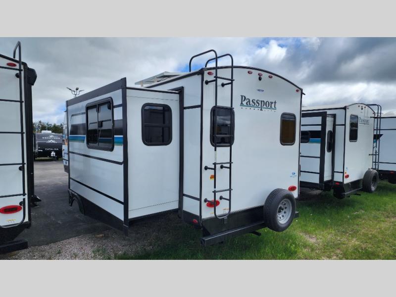 With any Keystone Passport Super Lite travel trailer you will enjoy lightweight towing and lots of interior comforts! The power tongue jack lets you hitch up at the drop of a hat, and the Dexter torsion axle rubber ride suspension will make towing easier than ever. You will appreciate having power stabilizer jacks for quick setup and an exterior convenience center to monitor tank levels. These trailers are constructed with a seamless, laminated and gel-coated filon exterior, 80% tinted safety glass windows, and a one-piece polypropylene underbelly. The interior will have you feeling right at home with residential durable Beauflor vinyl flooring, deluxe night shades, LED lighting throughout, and seamless kitchen countertops to name a few comforts.