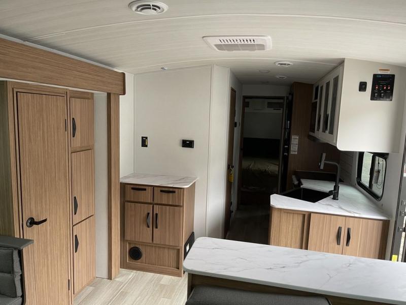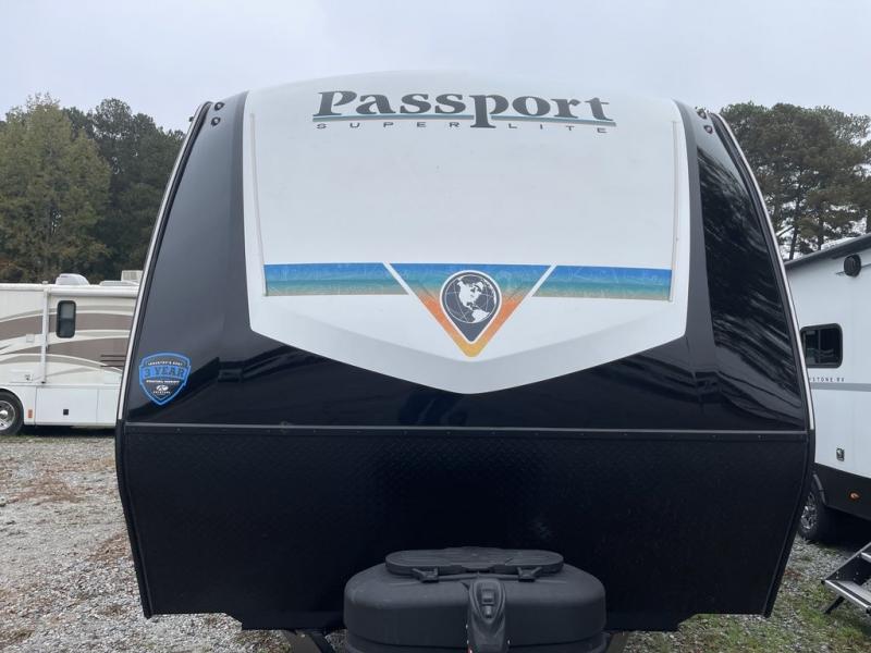 With any Keystone Passport Super Lite travel trailer you will enjoy lightweight towing and lots of interior comforts! The power tongue jack lets you hitch up at the drop of a hat, and the Dexter torsion axle rubber ride suspension will make towing easier than ever. You will appreciate having power stabilizer jacks for quick setup and an exterior convenience center to monitor tank levels. These trailers are constructed with a seamless, laminated and gel-coated filon exterior, 80% tinted safety glass windows, and a one-piece polypropylene underbelly. The interior will have you feeling right at home with residential durable Beauflor vinyl flooring, deluxe night shades, LED lighting throughout, and seamless kitchen countertops to name a few comforts.