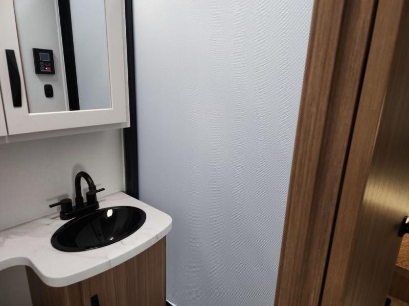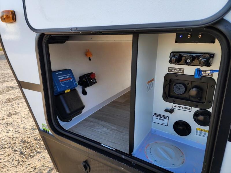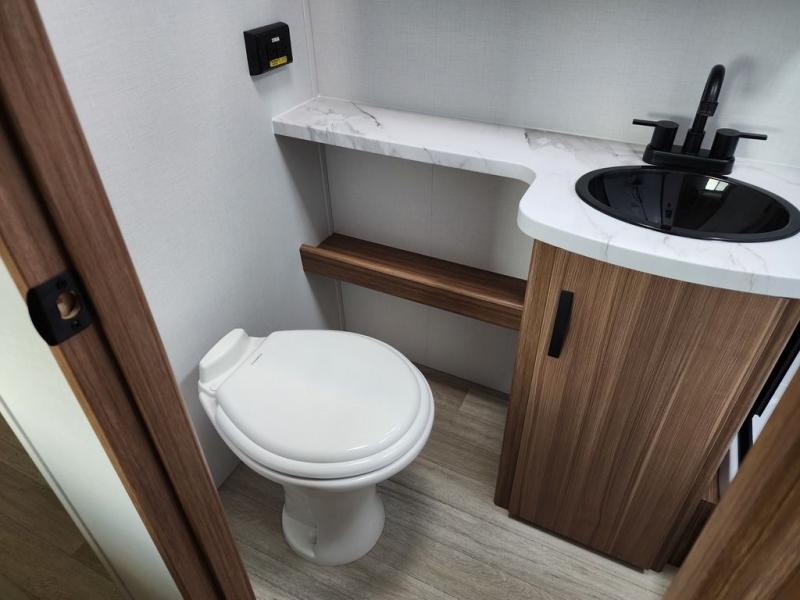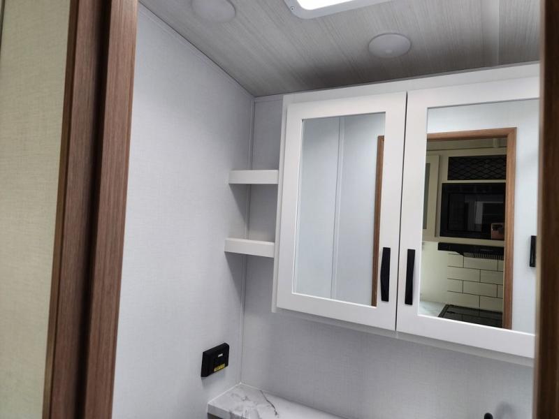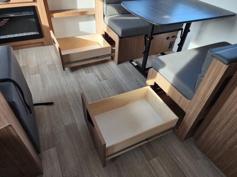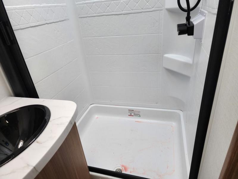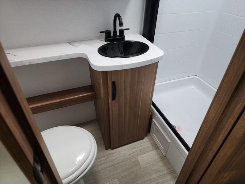 Step right into this rear living travel trailer for fun trips at the lake! There is an L-shaped sectional sofa in the back, along with an entertainment center and a fireplace to enjoy cozy evenings indoors. The booth dinette will provide a place to dine, play games, and even let a guest or two littles ones sleep. This unit also includes a spacious pantry and a coffee station where you can set up your own Keurig machine. A full kitchen will let you prepare meals each day, and the mid-coach full bath will be easily accessible for everyone to use. You will also love the front private bedroom with its queen bed, plus dual wardrobes and dual nightstands so everything has its own place!