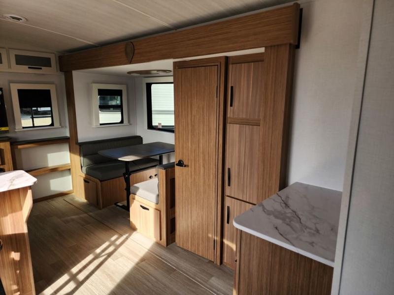 With any Keystone Passport Super Lite travel trailer you will enjoy lightweight towing and lots of interior comforts! The power tongue jack lets you hitch up at the drop of a hat, and the Dexter torsion axle rubber ride suspension will make towing easier than ever. You will appreciate having power stabilizer jacks for quick setup and an exterior convenience center to monitor tank levels. These trailers are constructed with a seamless, laminated and gel-coated filon exterior, 80% tinted safety glass windows, and a one-piece polypropylene underbelly. The interior will have you feeling right at home with residential durable Beauflor vinyl flooring, deluxe night shades, LED lighting throughout, and seamless kitchen countertops to name a few comforts.