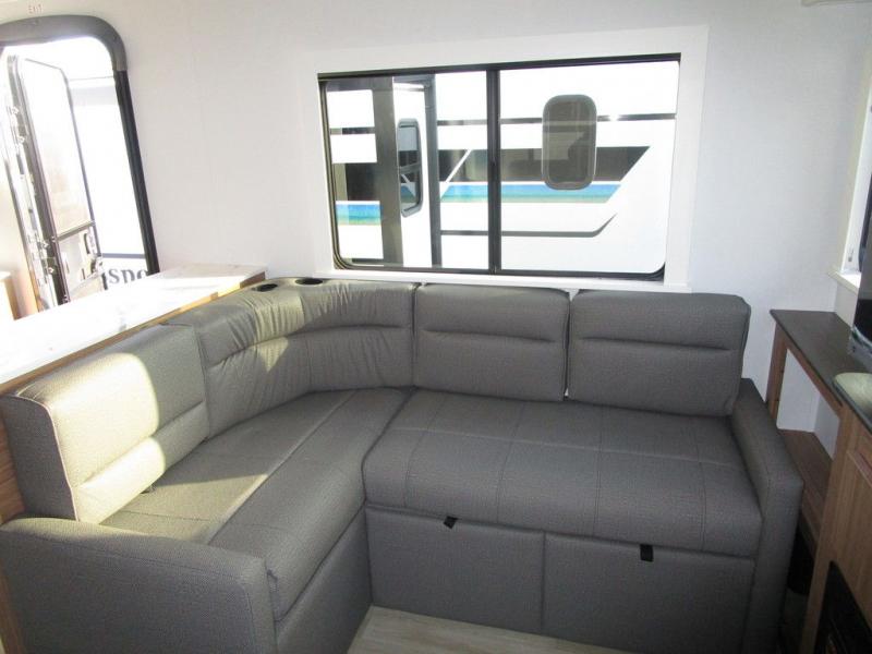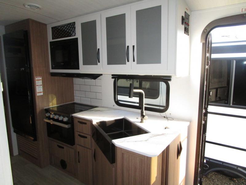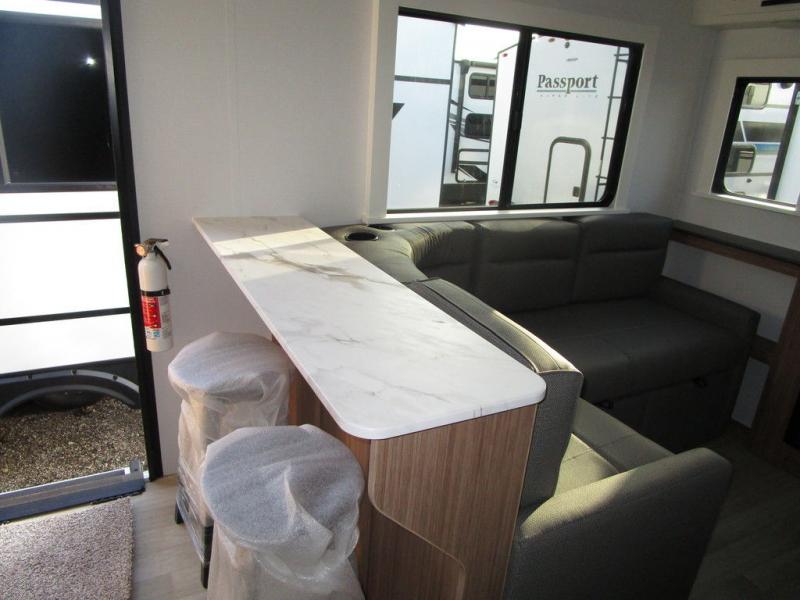 With any Keystone Passport Super Lite travel trailer you will enjoy lightweight towing and lots of interior comforts! The power tongue jack lets you hitch up at the drop of a hat, and the Dexter torsion axle rubber ride suspension will make towing easier than ever. You will appreciate having power stabilizer jacks for quick setup and an exterior convenience center to monitor tank levels. These trailers are constructed with a seamless, laminated and gel-coated filon exterior, 80% tinted safety glass windows, and a one-piece polypropylene underbelly. The interior will have you feeling right at home with residential durable Beauflor vinyl flooring, deluxe night shades, LED lighting throughout, and seamless kitchen countertops to name a few comforts.