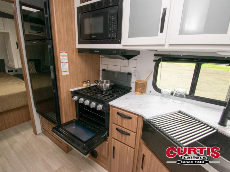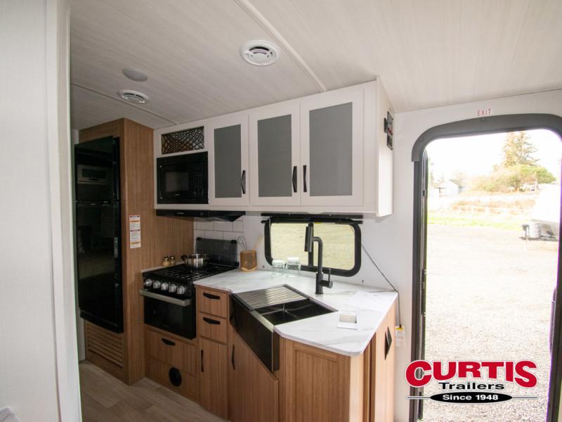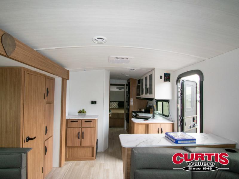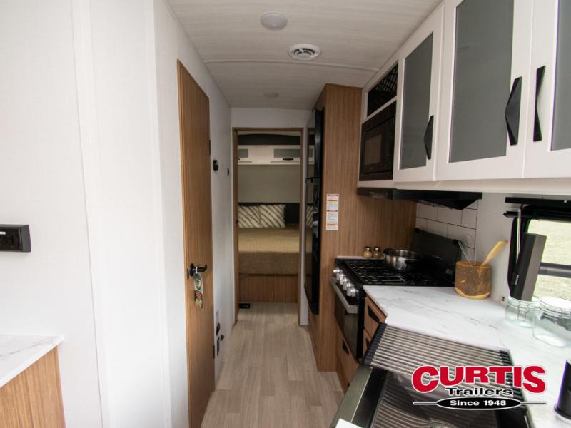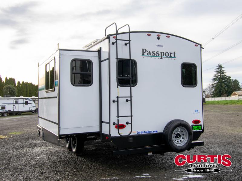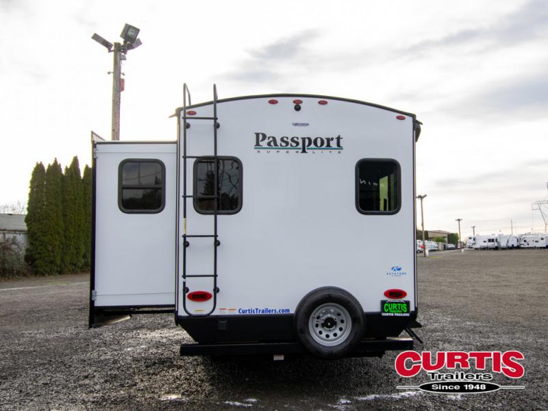 With any Keystone Passport Super Lite travel trailer you will enjoy lightweight towing and lots of interior comforts! The power tongue jack lets you hitch up at the drop of a hat, and the Dexter torsion axle rubber ride suspension will make towing easier than ever. You will appreciate having power stabilizer jacks for quick setup and an exterior convenience center to monitor tank levels. These trailers are constructed with a seamless, laminated and gel-coated filon exterior, 80% tinted safety glass windows, and a one-piece polypropylene underbelly. The interior will have you feeling right at home with residential durable Beauflor vinyl flooring, deluxe night shades, LED lighting throughout, and seamless kitchen countertops to name a few comforts.